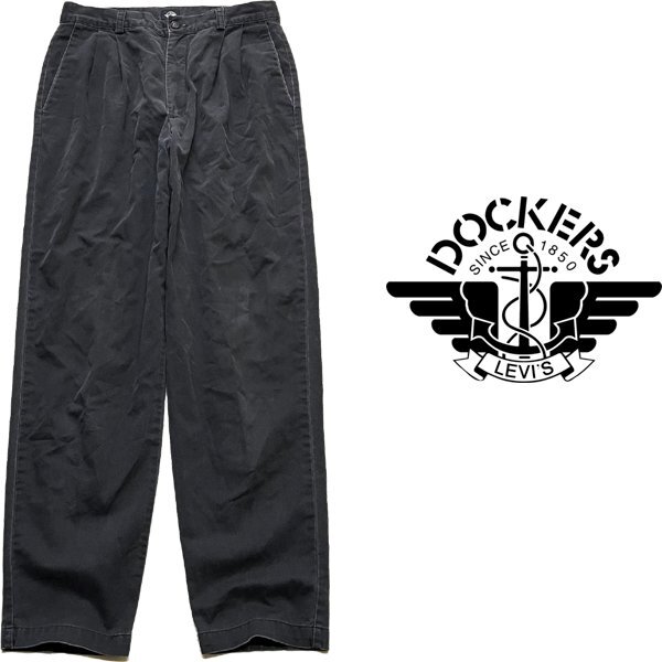 1点物◆リーバイス系ドッカーズ黒2タックチノパン古着メンズレディースOKアメカジ90sストリート/スポーツMixワークパンツ/スラックス349091