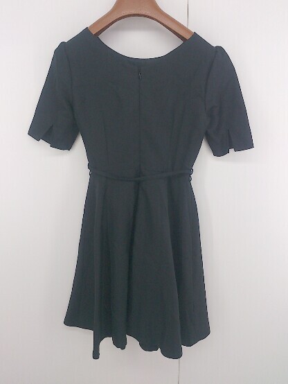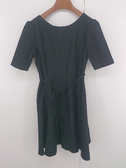 ◇ ◎ ROPE PICNIC ロペピクニック ノーカラー キレイめ 半袖 ミニ ワンピース サイズ36 ブラック レディース E