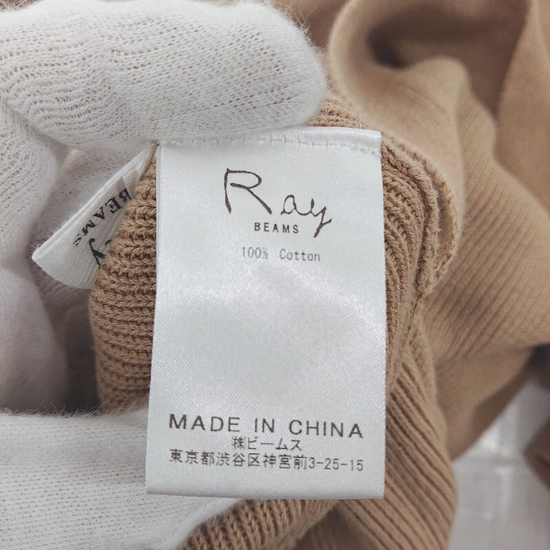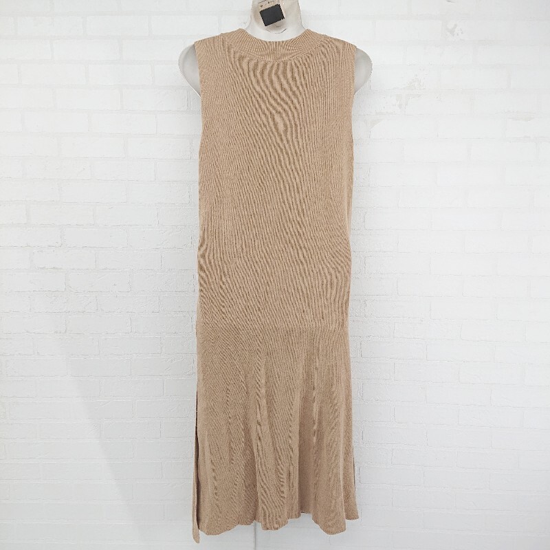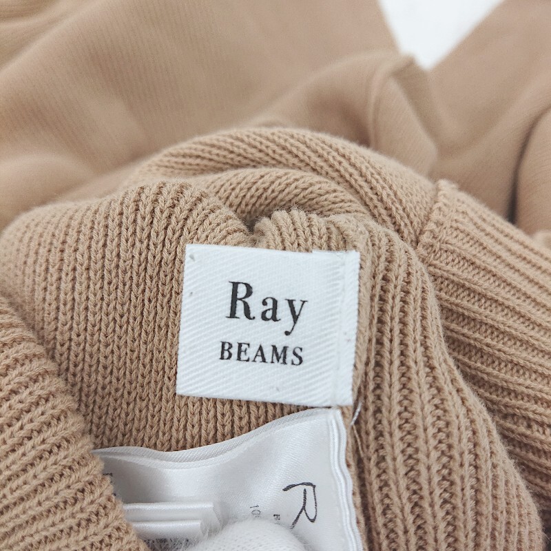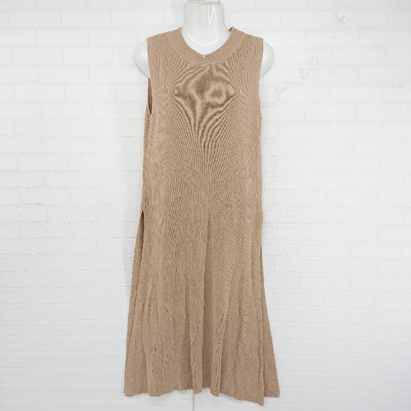 ◇ Ray BEAMS コットン ニット サイドスリット ノースリーブ 膝下丈 ワンピース ベージュ レディース E
