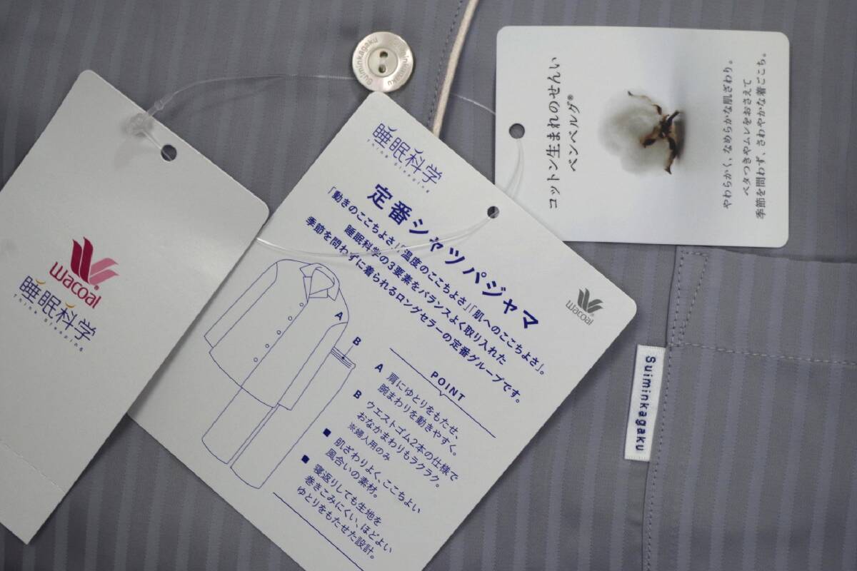 ワコール/睡眠科学のシルクのような肌ざわり、定番シャツパジャマ、新品です。たたみしわがあります。ご了承ください。