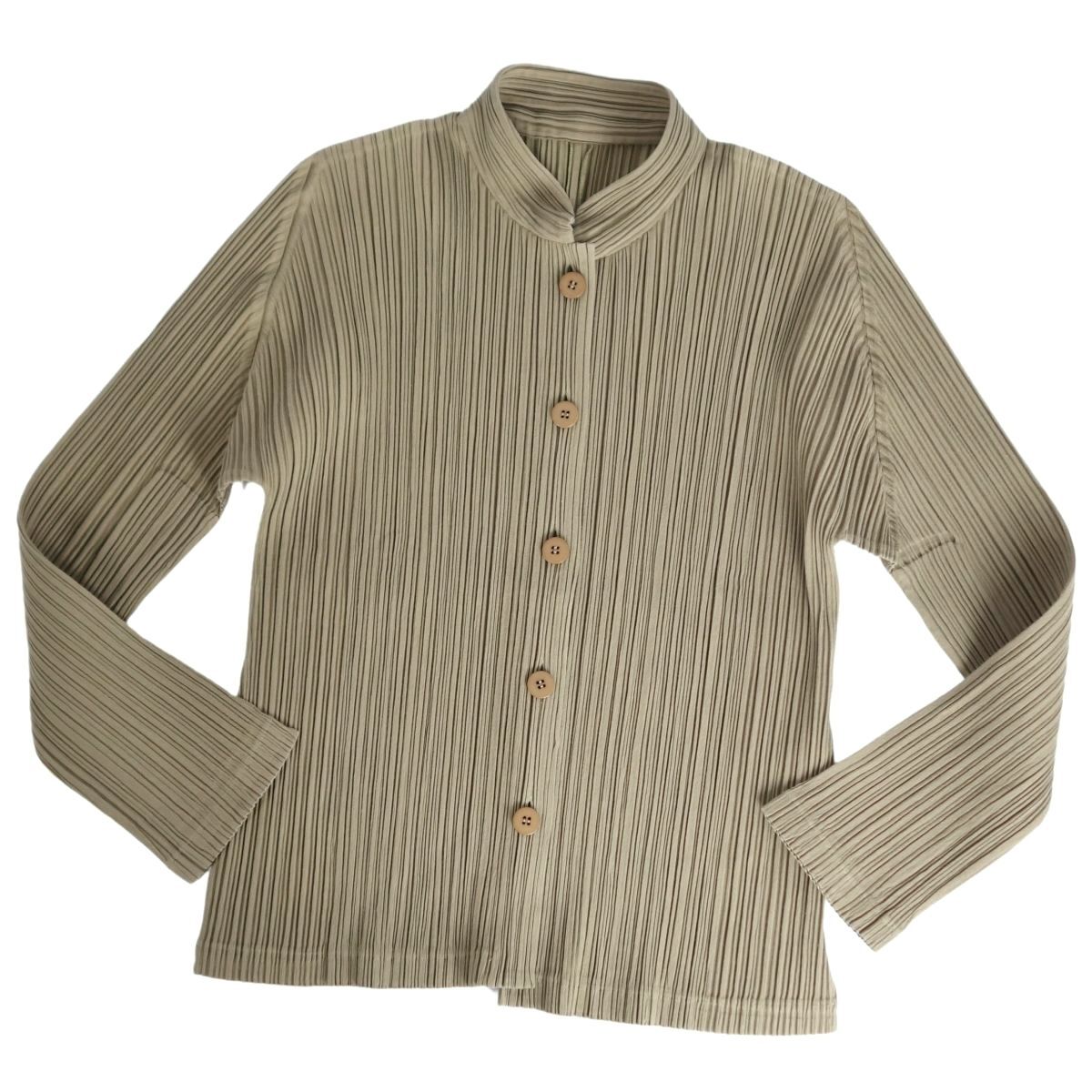 | 極美品 プリーツプリーズ イッセイミヤケ PLEATS PLEASE シャツ ブラウス ロングスリーブ 長袖 4(XL) カーキグリーン |