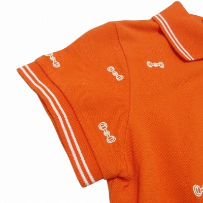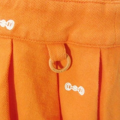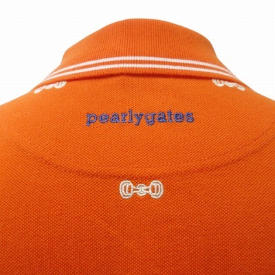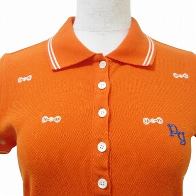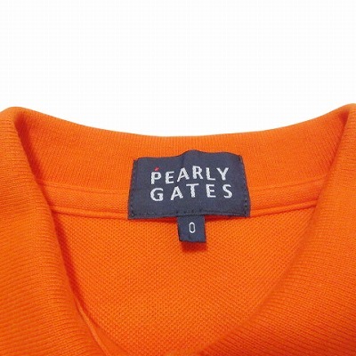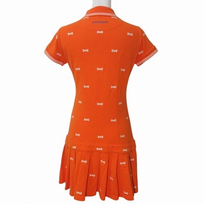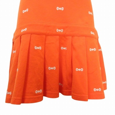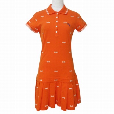 パーリーゲイツ PEARLY GATES 美品 ポロワンピース ひざ丈 半袖 ゴルフウェア プリーツ 刺繍 ライン 0 S相当 オレンジ BO71 X レディース