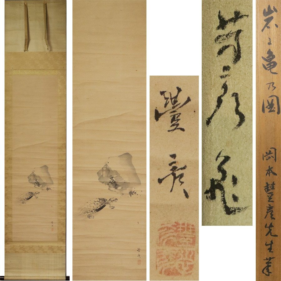 ■商品説明 下記、岡本豊彦の手により、 丁寧な筆使いにて長寿の象徴である、 亀の姿が描かれた趣き溢れる作品です。 《 岡本豊彦 》 1773年~1845年 江戸時代後期の画家。 安永2年7月8日生まれ。はじめ黒田綾山,のち京都にでて松村月渓にまなぶ。 備中(岡山県)出身。字は子彦。通称は司馬。号は鯉喬・村・澄神斎・丹岳山人など。 山水画を得意とし,松村景文とならび四条派を代表する画家となった。 弘化2年7月11日死去。73歳。 ■紙本・肉筆 ■状 態 時代なりのヤケ・オレ・多少のシミ等あり。 ■寸 法 軸寸法/約172.0cm×約38.0cm。 本紙寸法/約103.0cm×約28.0cm。 ■落 款 御覧の様な銘・落款等あり。 ■箱 箱。 【即決・送料無料】の表示商品に限り、 一部地域(北海道・沖縄)を除き、送料無料キャンペーンを実施しております。 ご希望の方は、お早めに入札して頂けます様、宜しくお願い致します。 【※※なお、作品に対して疑問や質問がある場合には、※※】 質問欄もしくは、ストア情報に当方の情報が記載されておりますので、こちらをクリックしてお問い合わせ下さい。 宜しくお願い致します。 |