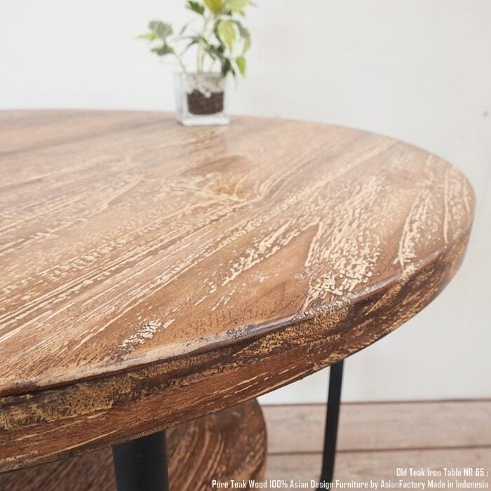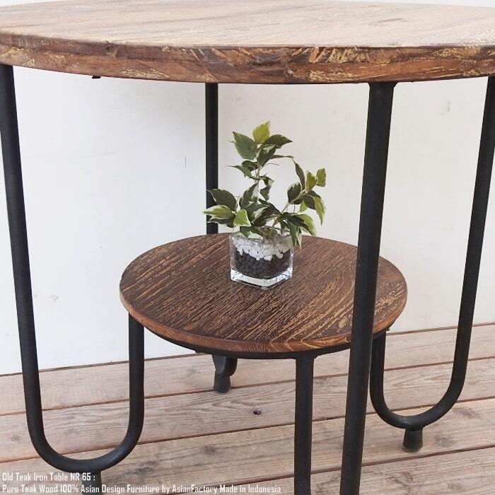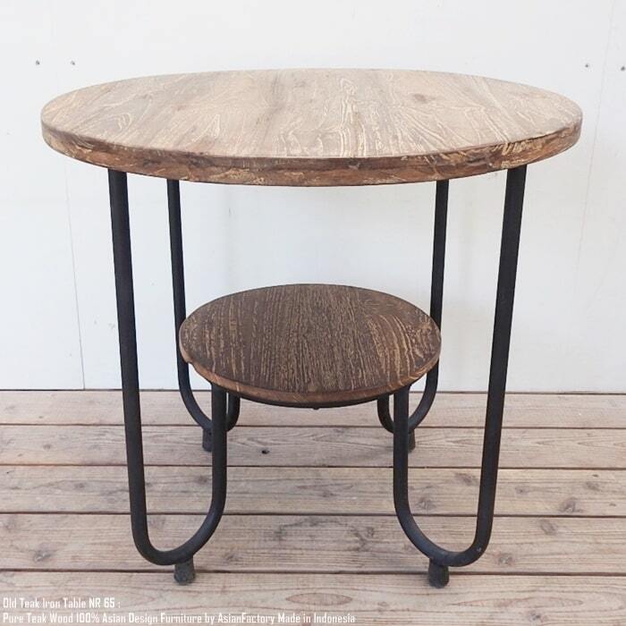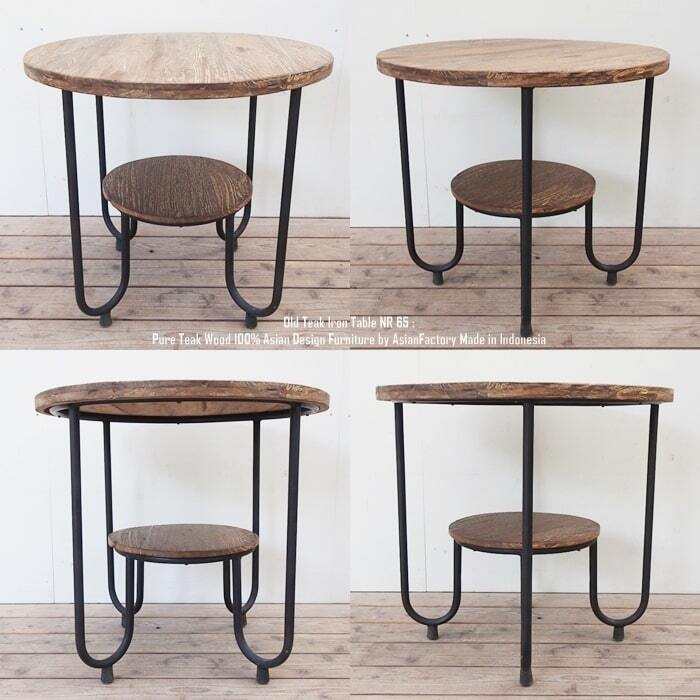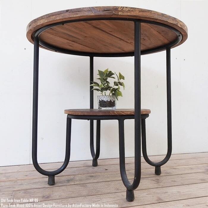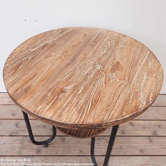 そのチーク材を天板に使用したラウンドテーブルで脚部はアイアンを使用しました。