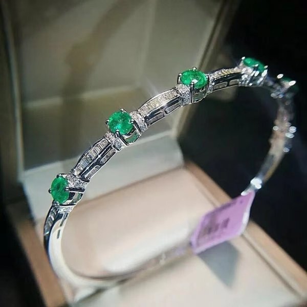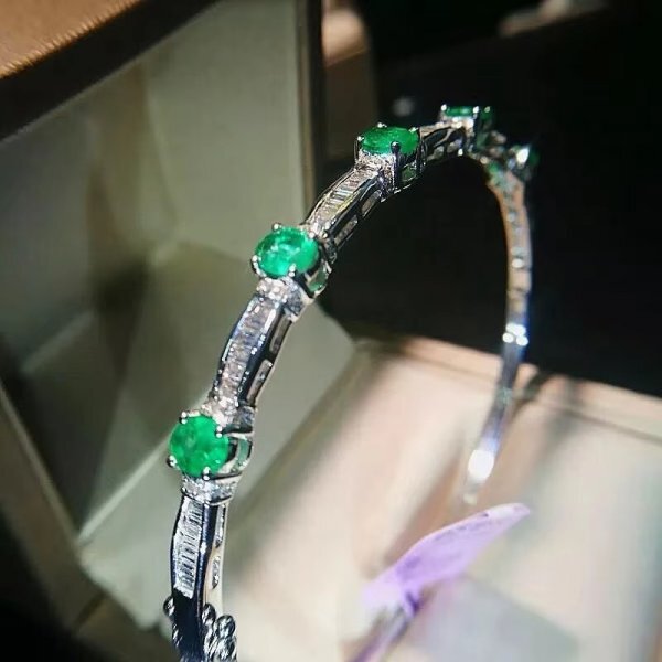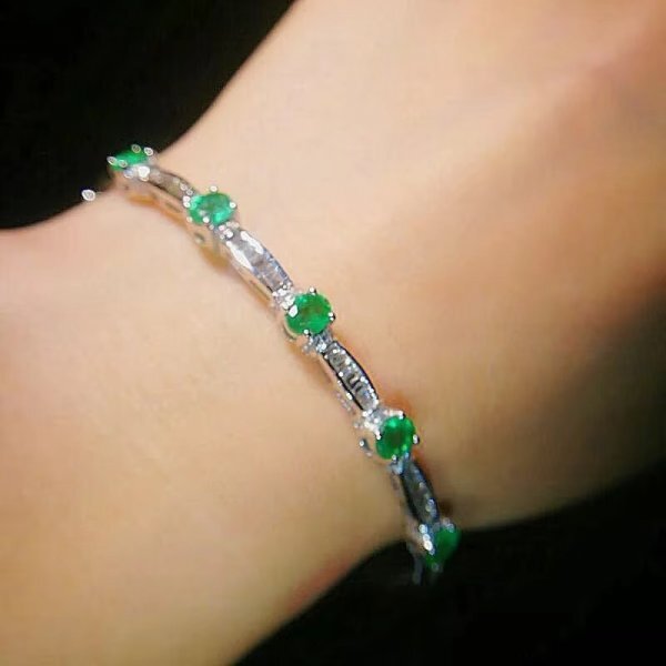 (証明書付き)女性のためのスターリングシルバーのエメラルドブレスレット、925スターリングシルバー、デザイナーチャーム