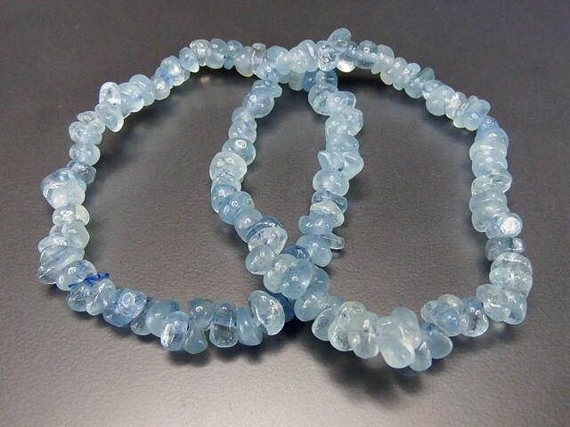 透明感良好良質シーブルー アクアマリン さざれ天然石ブレスレットプライム
