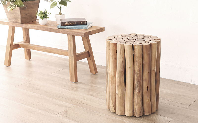 スツールの表面にはチーク無垢木を贅沢に使用しています。