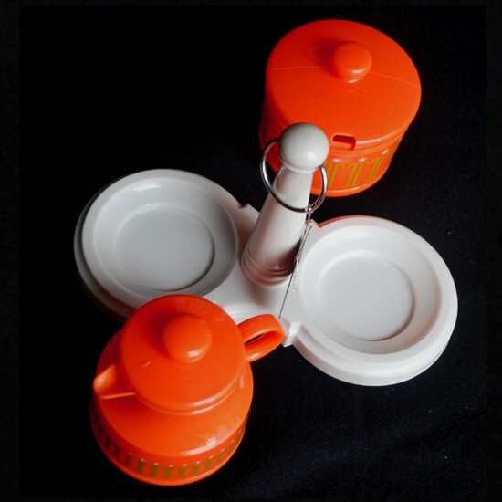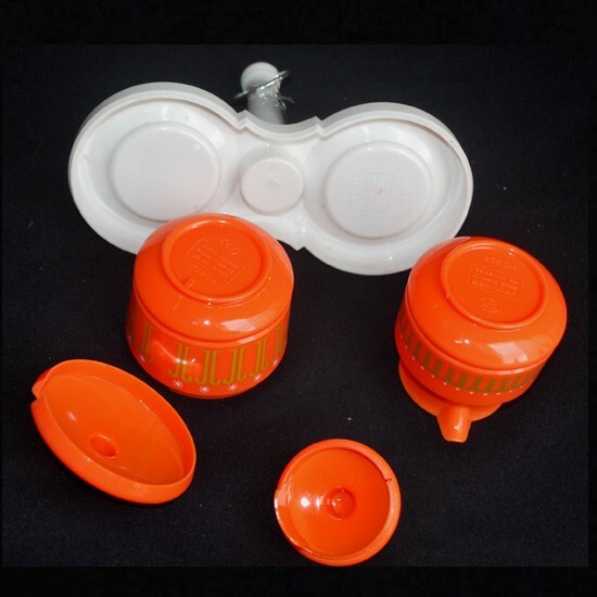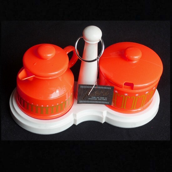 アカシア セット FROM THE HAND OF YOSHIKAWA CRAFTSMEN 樹脂 製品 ( 持手金具スチール製 ) 1970年代 日本製 ( 株式会社 ヨシカワ ) 古い荒物屋さんのデッドストック ( 売り残し品 ) で、未使用置き古し品。 ◆サイズ◆ ( 持手輪含まず 最大部分 ) 20 .3 × 9 . 6 × h : 13 . 3 ㎝ 程 ◆ 状態 ◆ シュガ―ポット口縁に、保管中の割れ箇所があります。 ( 画像参照 ) |