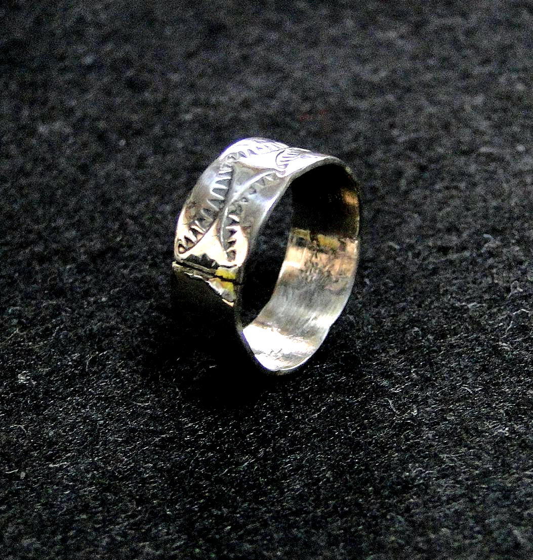 素朴な味わいの オールド ナバホリング シルバーハガネ ビンテージリング、、、 ◆商品詳細 ナバホ族/ 刻印無 素材;ステアリング /サイズ; 11号/ リング; 幅7mm 厚み0.9mm 1980年代品 ・新品・送料込 Vintage ハンドメイドシルバー特有の スレ、燻が御座います。 十分にご検討の上、 決断をお待ちしています。 |