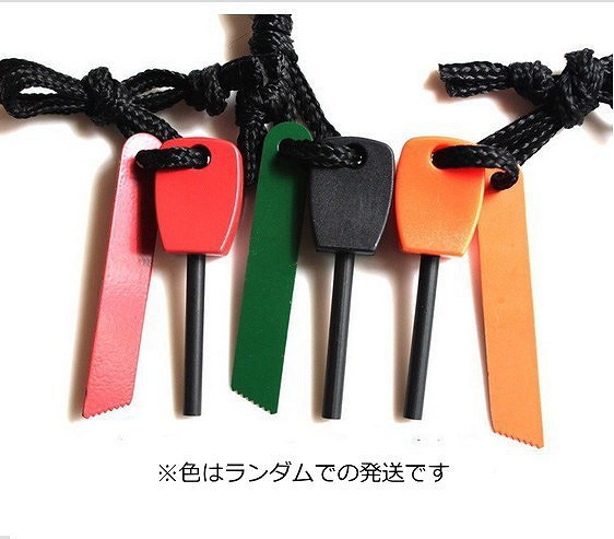 ■ファイヤースターター / 65 x 20 x 14mm (L x W x H) / 約50g / ロープの長さ:200mm / 色:ランダム