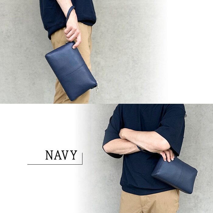 品質が高く美しい姫路産の牛革をポストミシンで立体的に仕上げた、日本の素材・日本の職人技に拘りぬいた珠玉の逸品。良いものを持ちたい、そんな貴方に使ってほしい。スタンダードな黒、落ち着いたネイビー、差し色になるブルーの3色展開で好みのカラーを選べます。シンプルでカチッとしすぎない柔らかめのクラッチバッグは、色々なコーデにも合わせやすい。誕生日や父の日のギフトに贈るのもお薦めです。