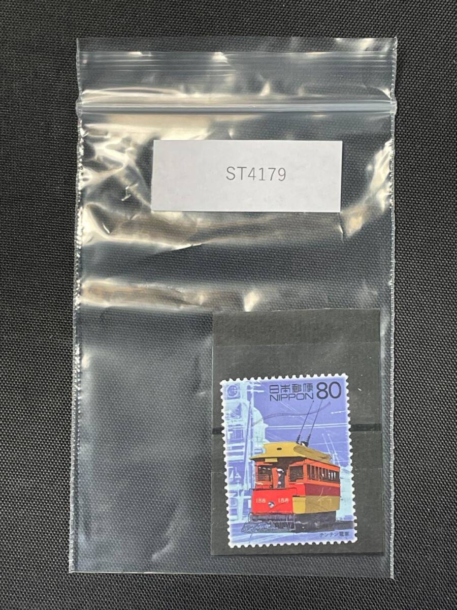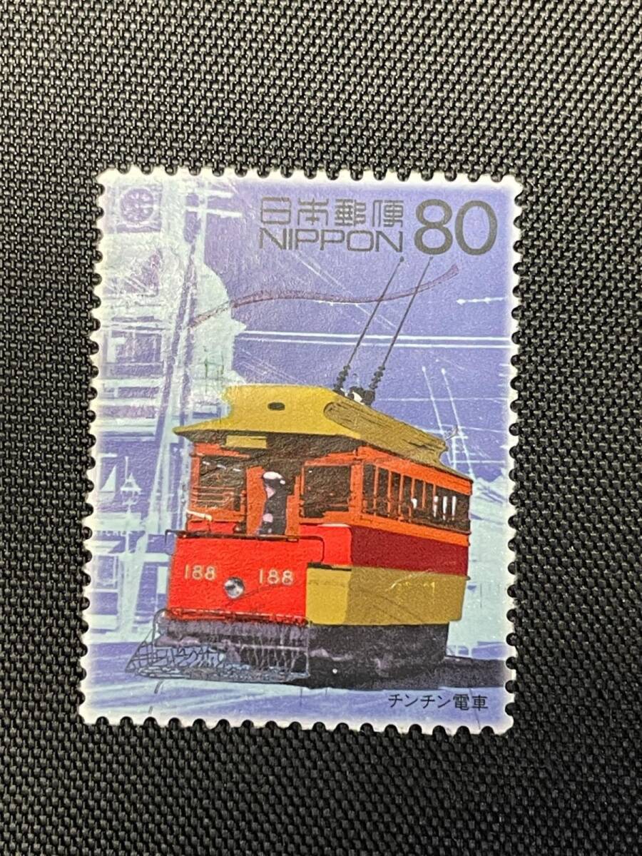 【昭和レトロ】チンチン電車 80円切手 使用済/消印あり 20世紀デザイン(管理番号ST4179)