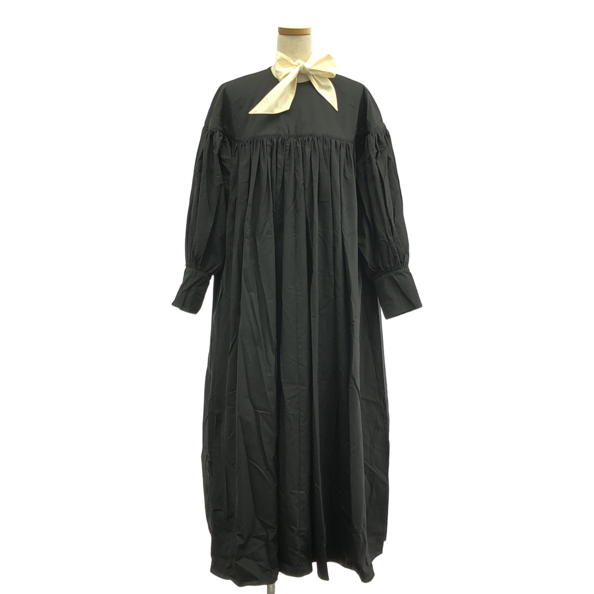 MORSE / モールス | コットン リボン付 フレア ロング ワンピース | F | ブラック | レディース