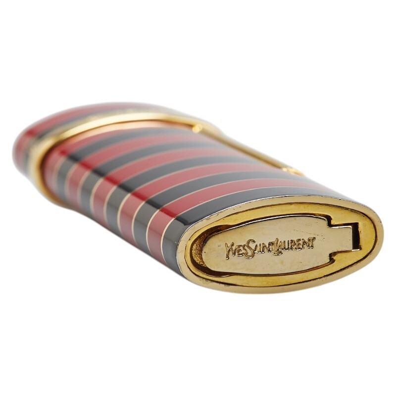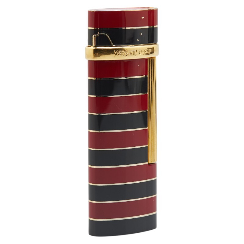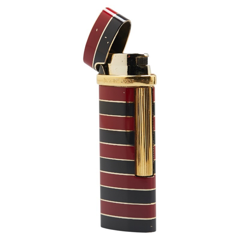 サンローラン ボーダー ガスライター ゴールド レッド ブラック メッキ レディース SAINT LAURENT 【中古】