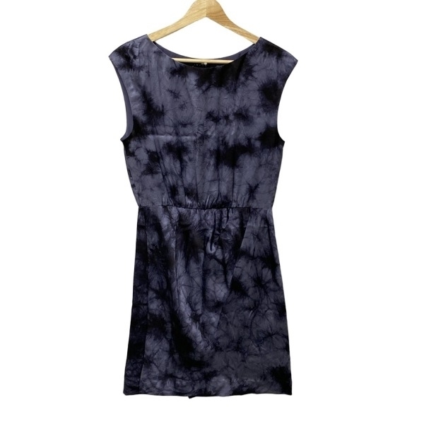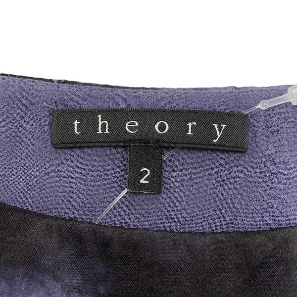 セオリー theory サイズ2 S - シルク ブルー×黒 レディース ノースリーブ/ミモレ丈 美品 ワンピース