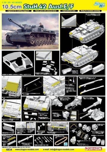 商品解説■【実車について】第二次大戦でドイツ軍がIII号戦車の車体を利用して背の低い固定戦闘室に75mm砲を搭載したのがIII号突撃砲です。歩兵の火力支援を目的に開発され、敵の陣地攻撃などに活躍。その後、陣地攻撃にとどまらず、敵戦車から歩兵を守る対戦車戦闘にも威力を発揮するようになりました。さまざまなタイプが作られたIII号突撃砲の中のひとつが主砲に10.5cm榴弾砲を搭載した10.5cm突撃榴弾砲です。E型の車体をベースに試作車両が製作され、その後、アルケット社によってF/8型車体を使用して量産がはじめられました。1942年11月に量産試作型がレニングラード戦に送られ、初陣を飾ると、歩兵からはその性能が高く評価されたのです。終戦までに約200両が生産されたといわれます。【モデルについて】これまでなかなか注目されなかったマイナーな車種にスポットを当てたドラゴンの新シリーズが登場。新シリーズの第1弾には、第二次大戦のドイツ軍10.5cm突撃榴弾砲SruH.42をピックアップしています。歩兵から大きな信頼を集めた1輌を1/35スケールで再現したプラスチックモデル組み立てキットです。キットはIII号突撃砲F型をベースに作られたタイプを再現しています。すでに発売され、高い評価をいただいているドラゴンのIII号突撃砲のキットをベースに構成。車体上部構造物の中で戦闘室とそのルーフパーツは新規開発。形状をしっかりと再現しています。また、フロントフェンダーにはエッチングパーツを用意。いっそうのリアリティーを確保しています。もちろん大口径の10.5cm砲も繊細な表現で迫力を再現。歩兵の信頼も感じられる仕上がりです。もちろん、ドラゴンモデルならではの再現でエンジンデッキやサスペンション、車体下部も見逃せません。足元を引き締める履帯は組み立てやすいDSトラックを採用しています。これまで、改造やスクラッチを考えていたモデラーにはうれしい驚きのラインアップが揃う新シリーズの展開も楽しみです。【主な特徴】これまでなかなか注目されなかったマイナーな車種にスポットを当てたドラゴンの新シリーズIII号突撃砲F型をベースに作られたタイプを再現車体上部構造物の中で戦闘室とそのルーフパーツは新金型を使用し形状をしっかりと再現フロントフェンダーにはエッチングパーツを用意大口径の10.5cm砲も繊細な表現で迫力を再現履帯は組み立てやすいDSトラックを採用新金型追加【商品詳細】スケール:1/35
