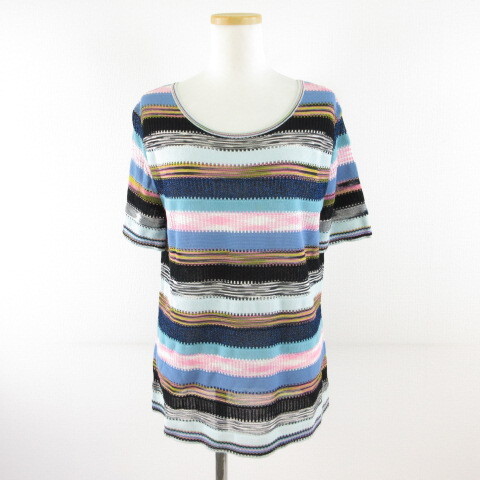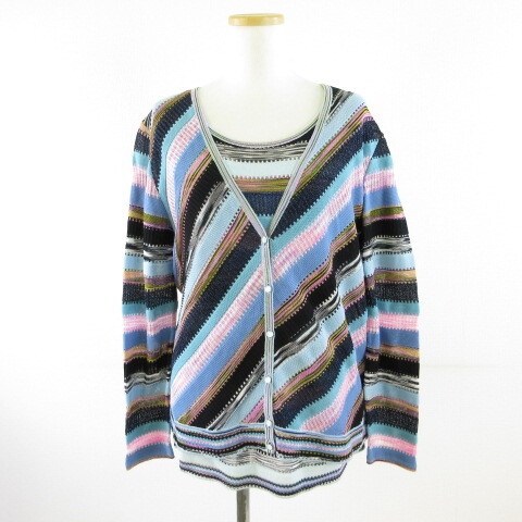 ミッソーニ MISSONI アンサンブル サマーニット カーディガン 長袖 半袖 イタリア製 青 48 50 *T431 レディース