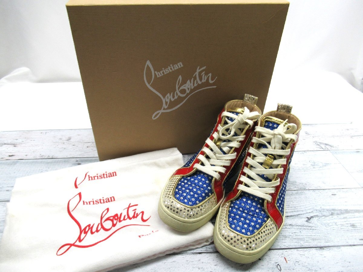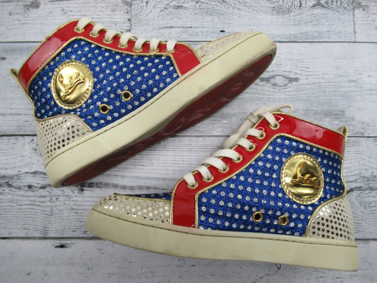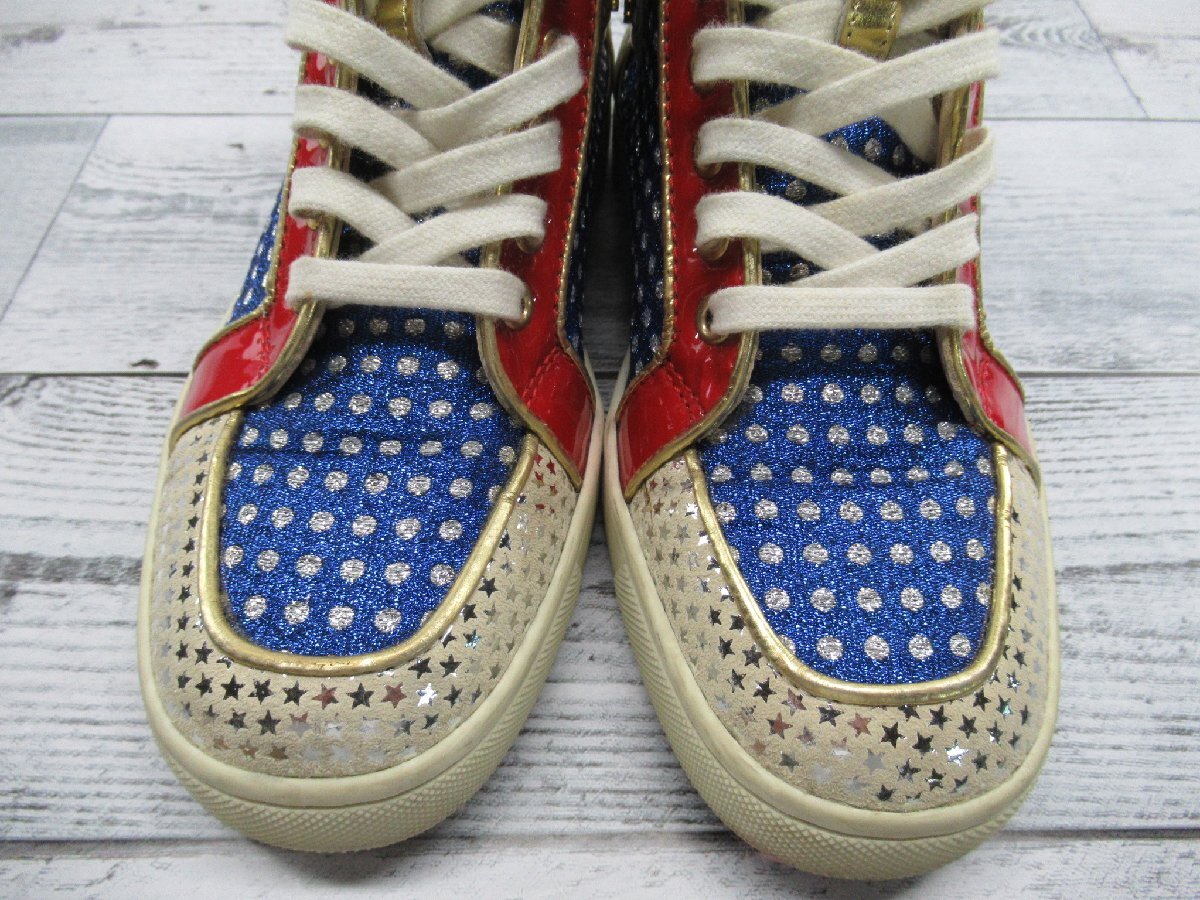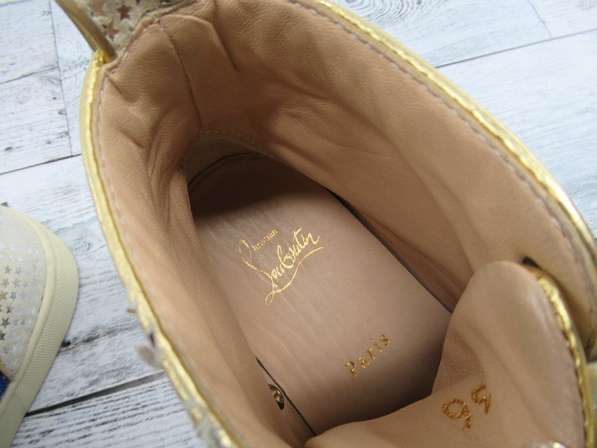 ☆☆【B送900円】1800 Christian Louboutin クリスチャンルブタン SUPERBALL FLAT MULTI ハイカットスニーカー ゴールド ラメ 36