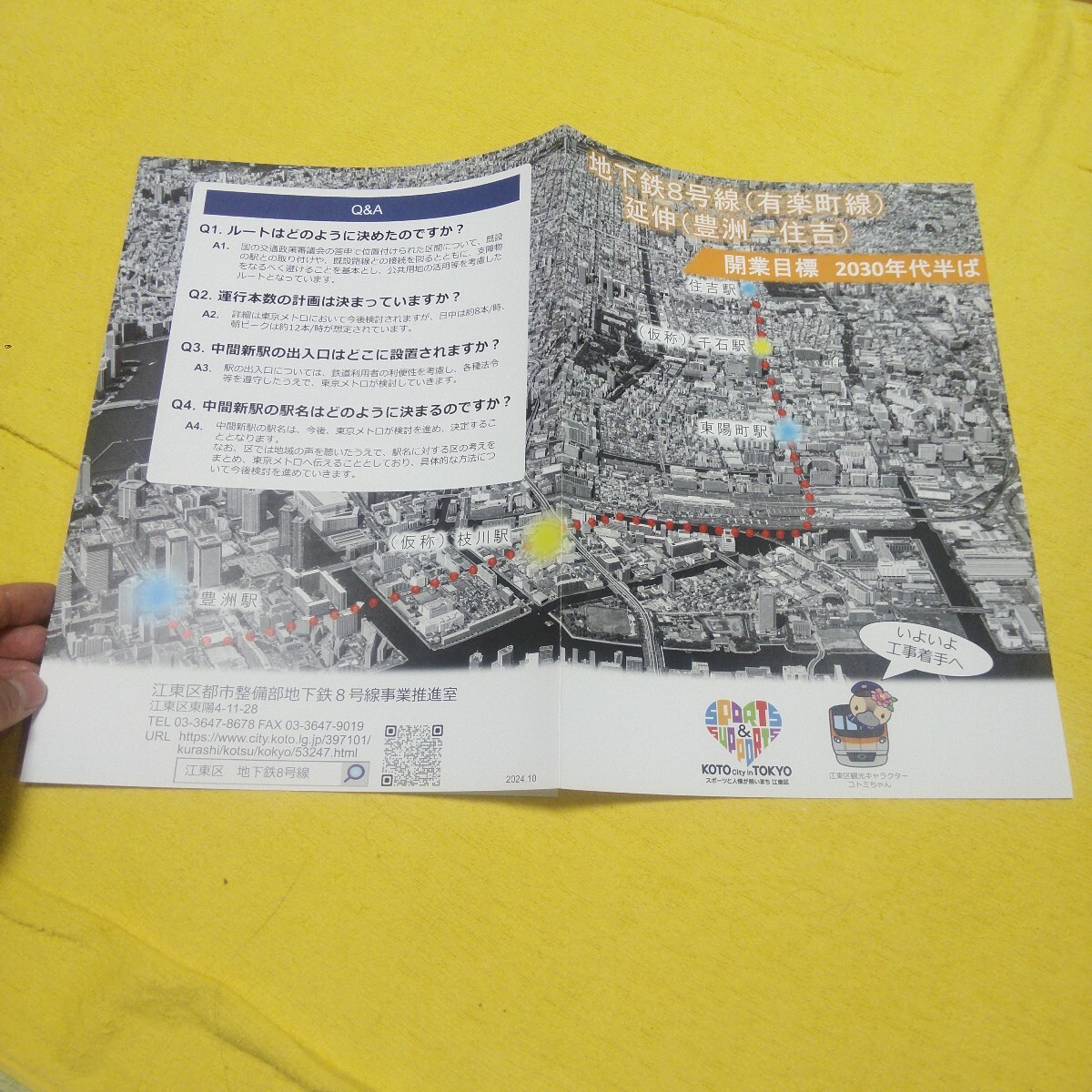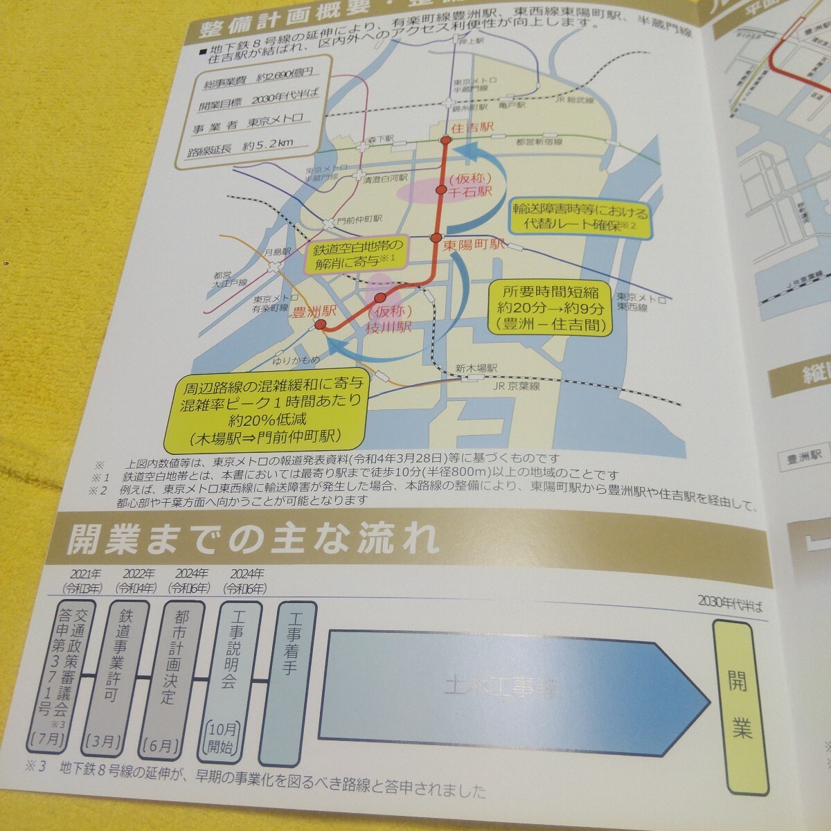送料込 即決【手渡しで一部返金も可】地下鉄8号線 有楽町線 延伸 パンフ リーフレット 江東区都市整備部地下鉄8号線事業推進室