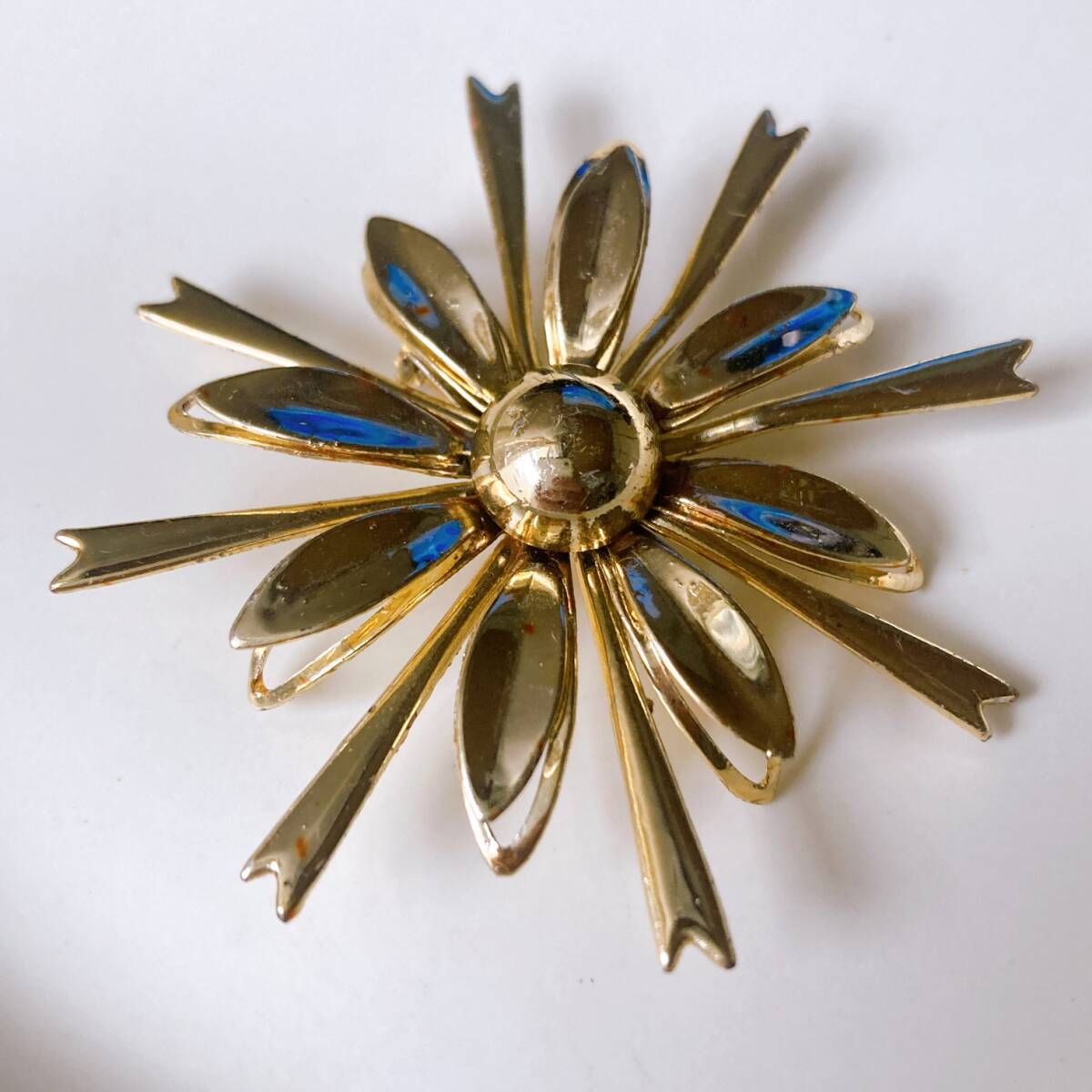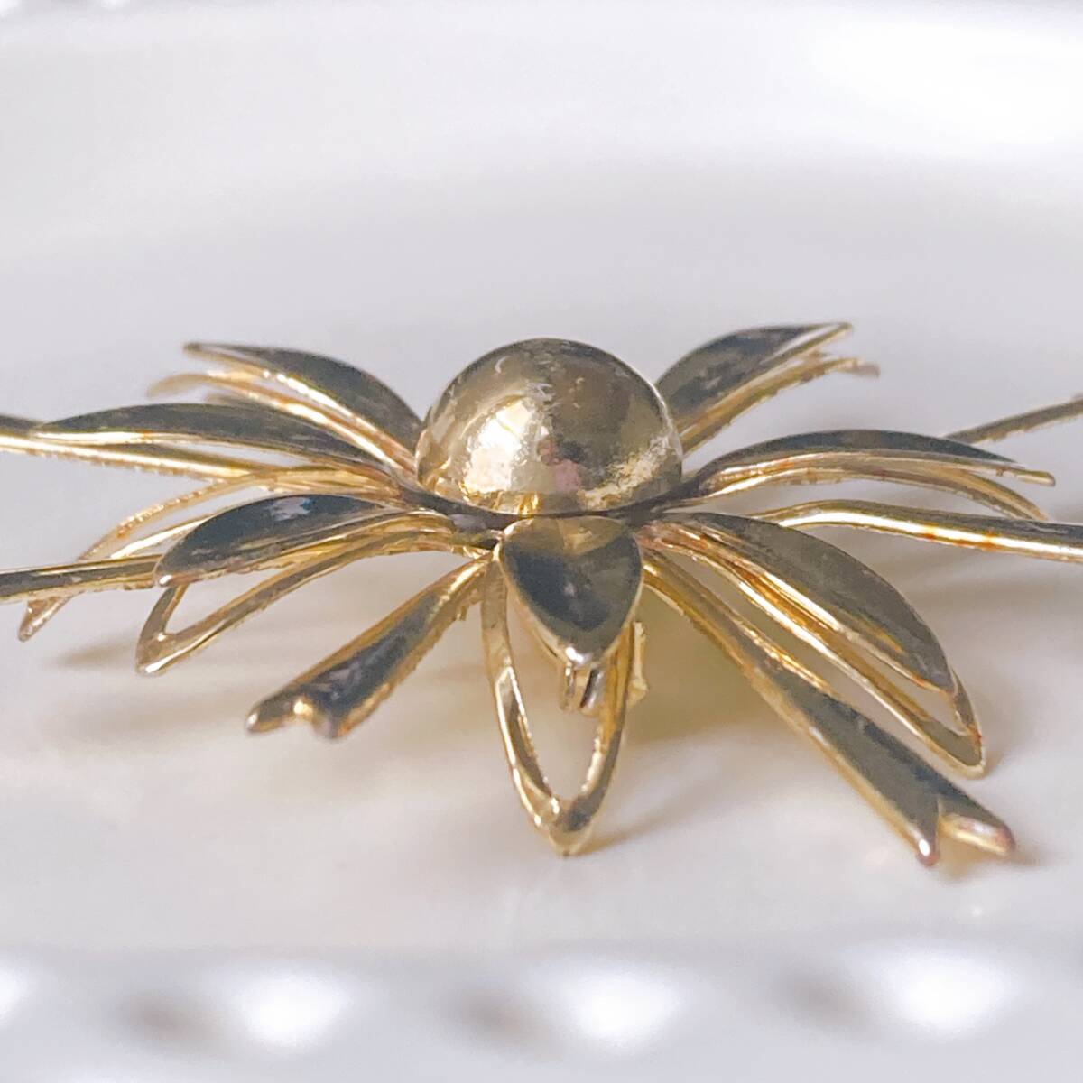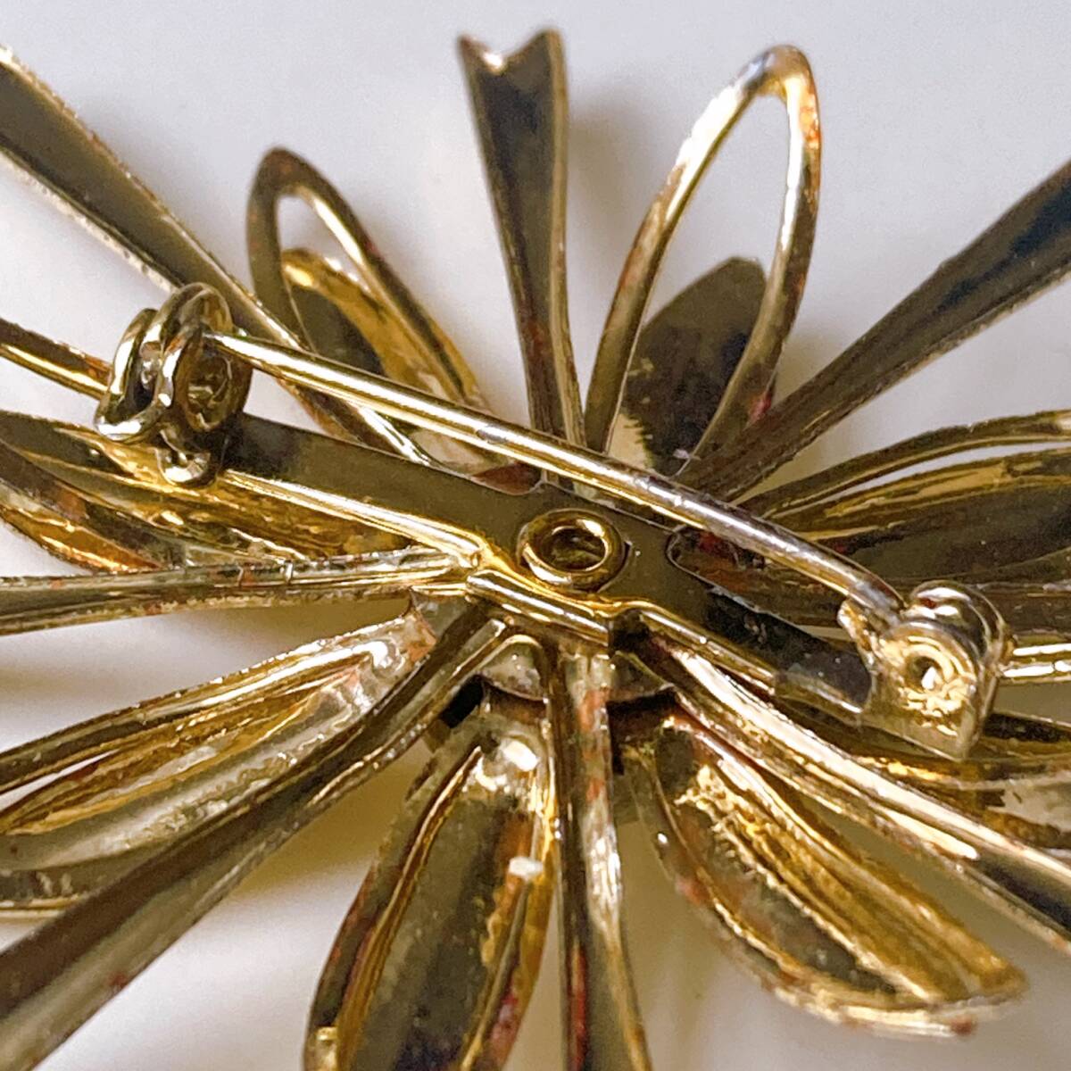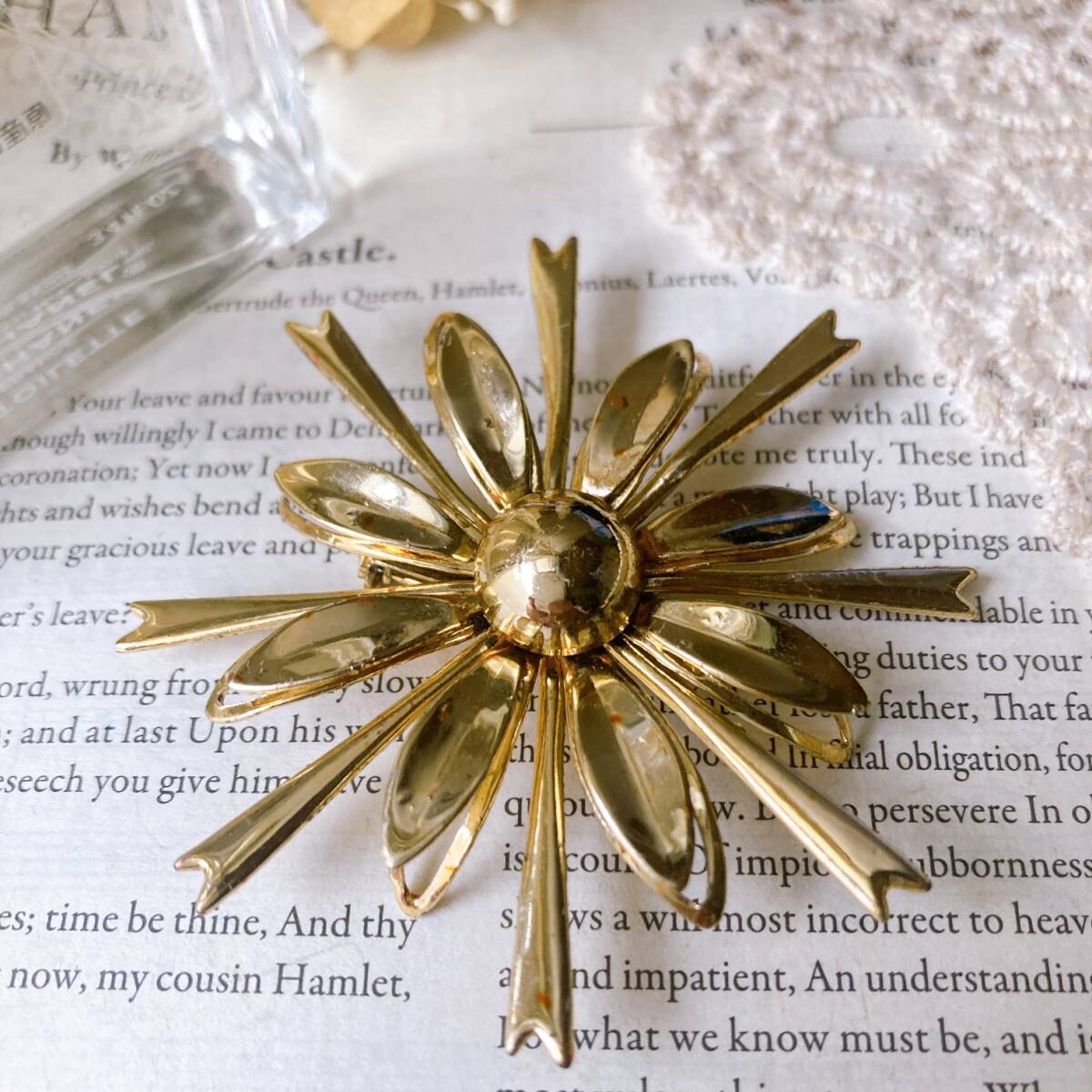 ヴィンテージブローチ ゴールド フラワー お花 メタリック☆vintage jewelry accessoriesR0538
