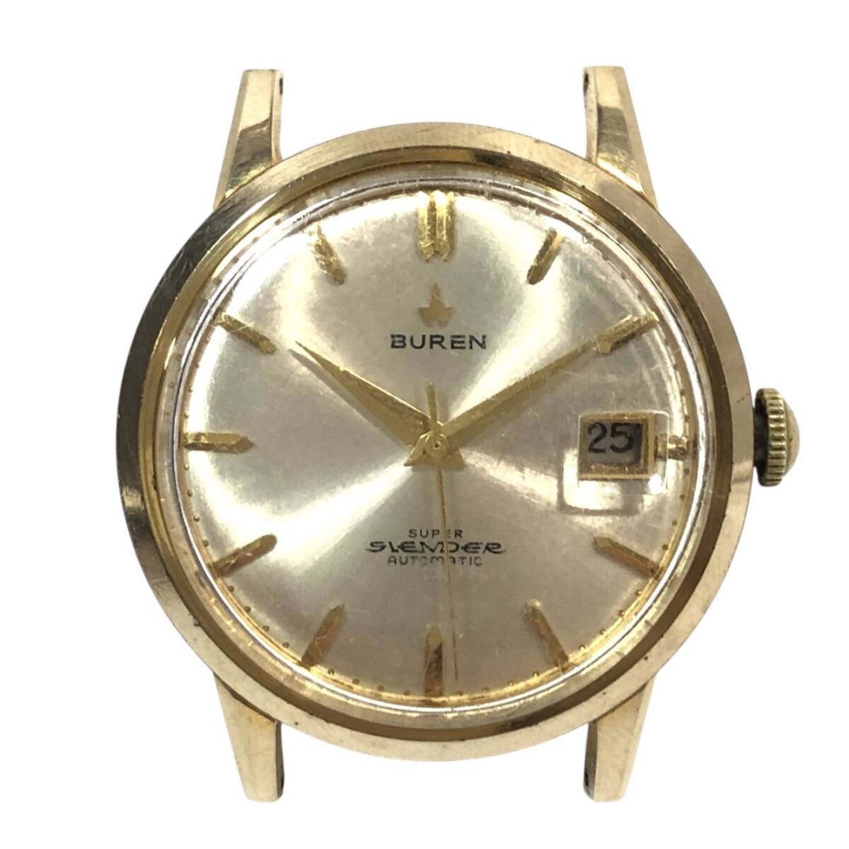| *【レア】BUREN 78001 スーパースレンダー 25石 自動巻 メンズ 腕時計 デイト ゴールド文字盤 ゴールドカラー ビューレン 稼働品 |