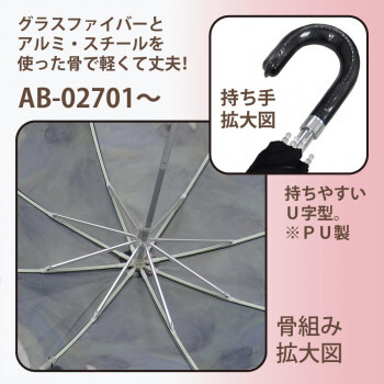 | 素材・材質 | かさ生地:ポリエステルポンジー100%(二重張り) ハンドル:PU リブ:グラスファイバー・アルミ シャフト:アルミ・スチール |