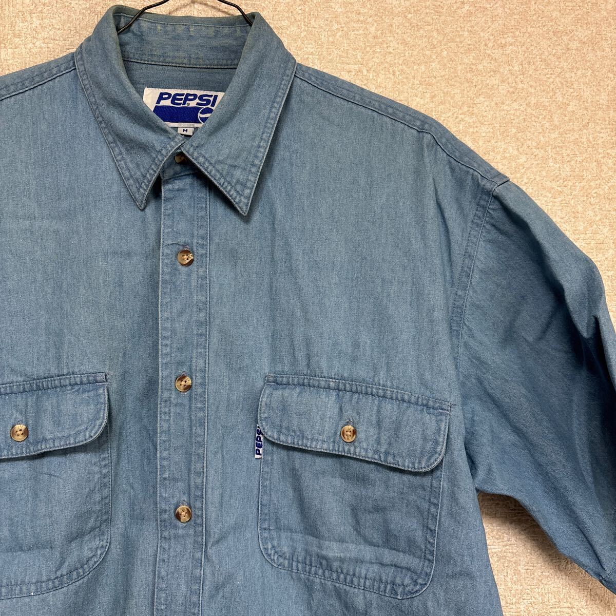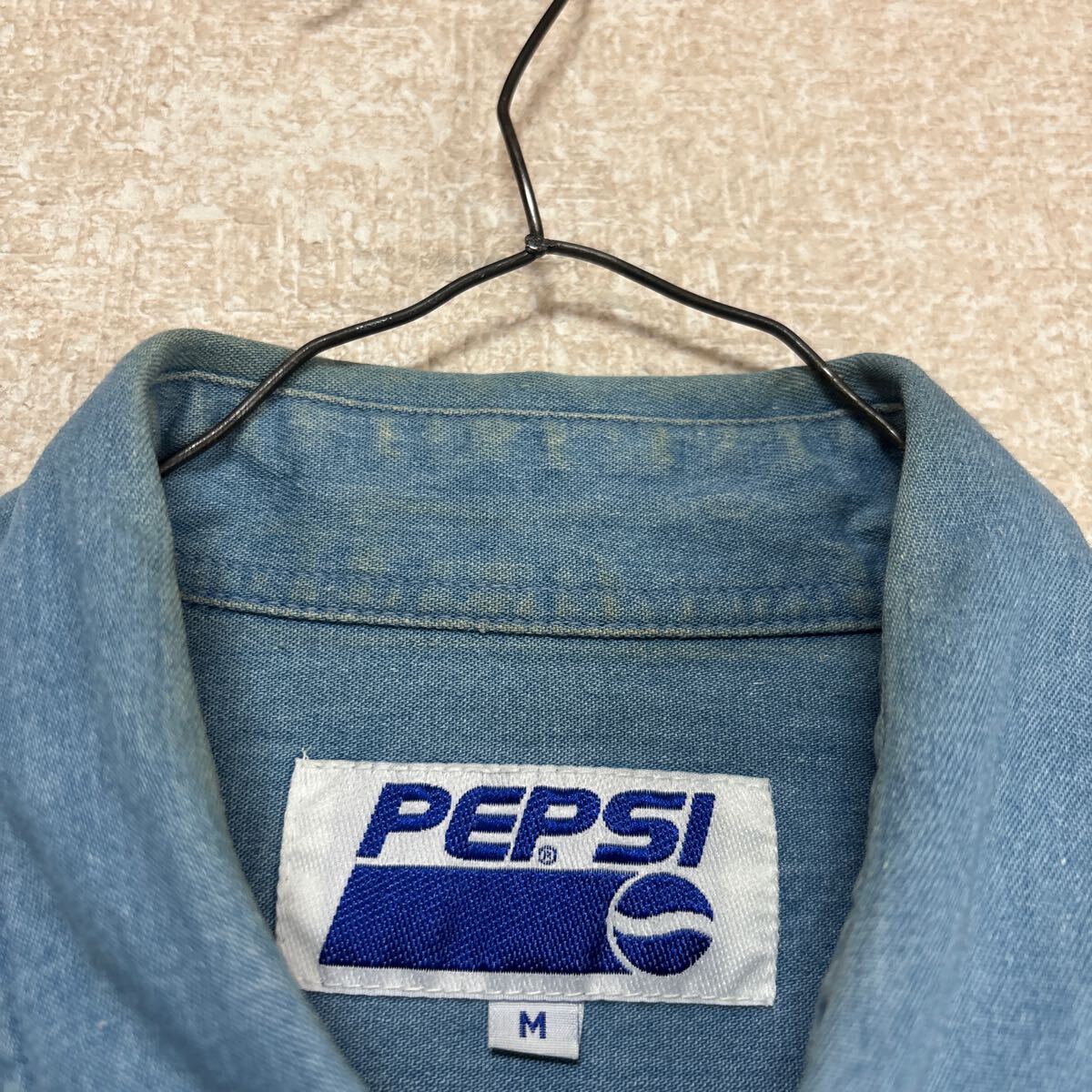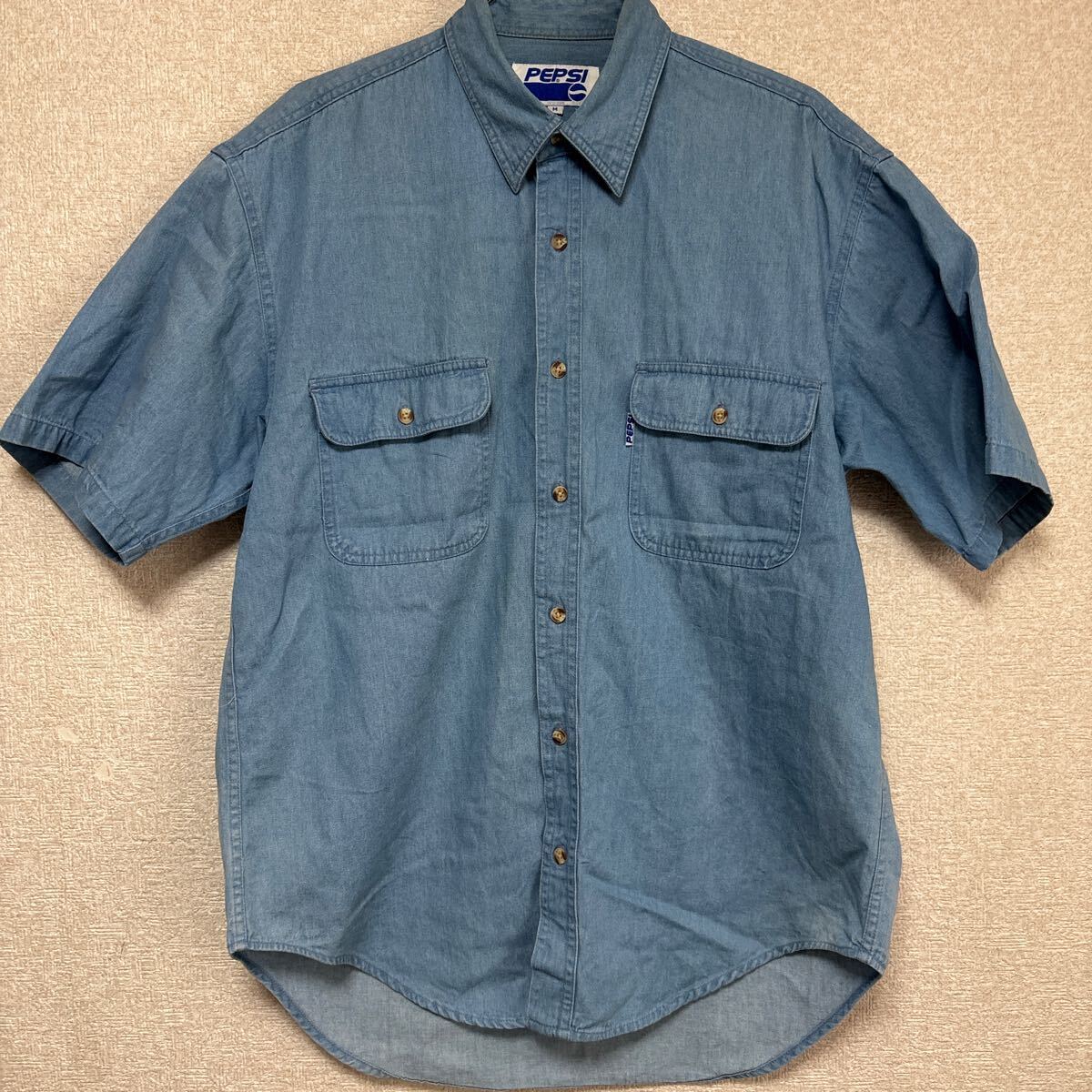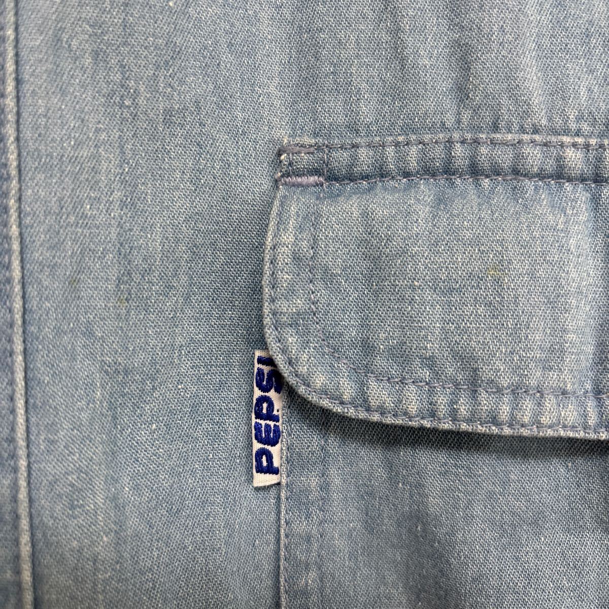 【絶妙なフェード感】 80s PEPSI ペプシ ビンテージ デニム 半袖シャツ ビッグシルエット メンズMサイズです。
