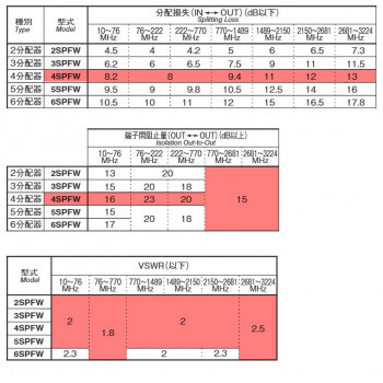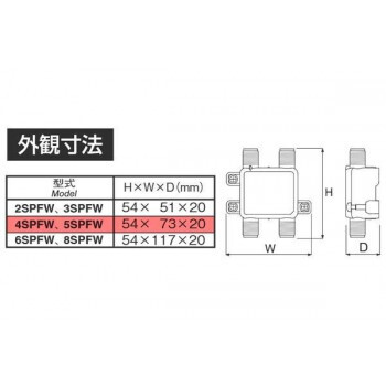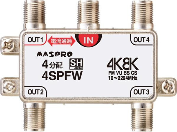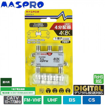 4K・8K衛星放送(3224MHz)に対応、地デジ・BS・CS分配器(1端子電流通過型4分配器)です。 |