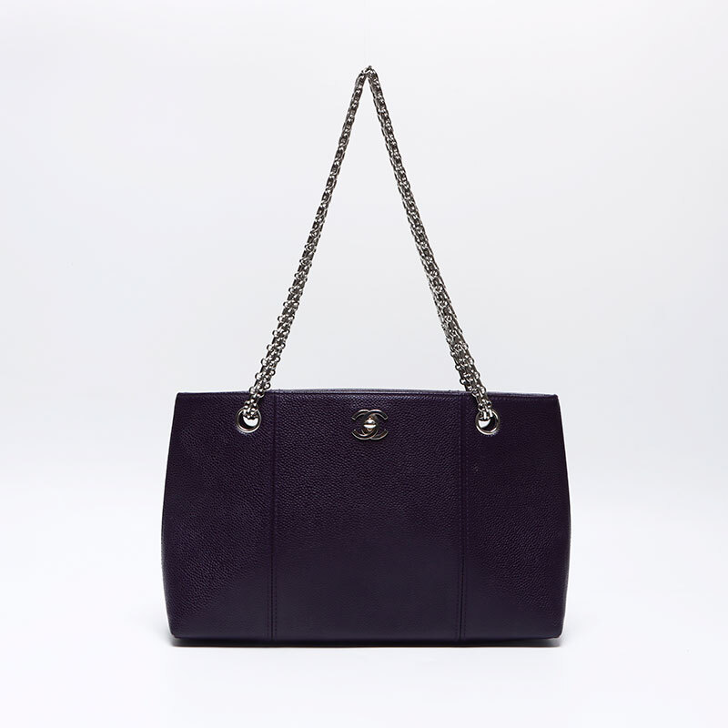 シャネル CHANEL ショルダーバッグ キャビアスキン ココマーク チェーン 6番台 スモール 2000-2001 パープル