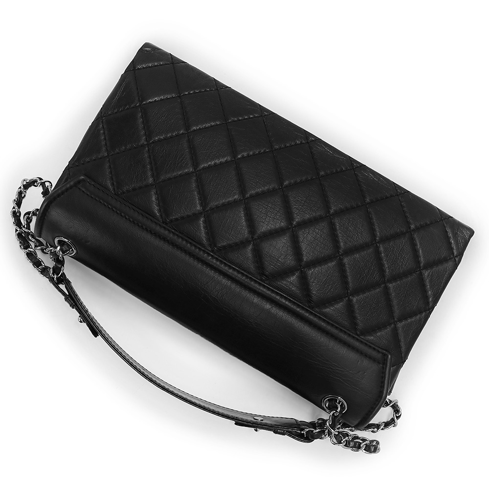 (美品)シャネル CHANEL ココマーク マトラッセ チェーン トートバッグ エイジドカーフスキン レザー ブラック 黒 シルバー金具 A90201