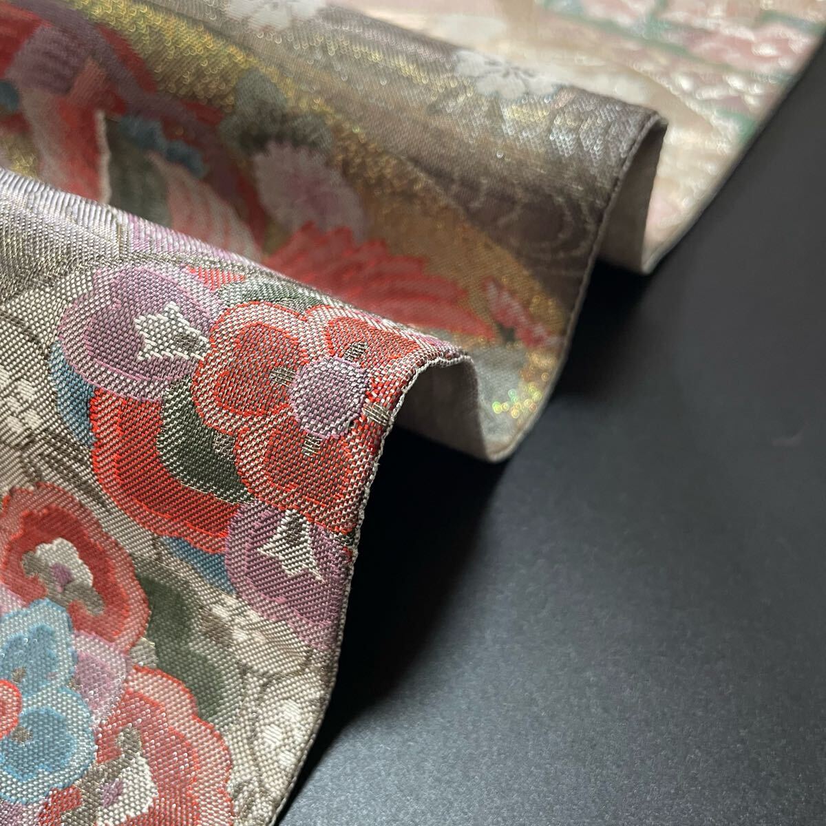 ・とても華やかで美しい六通袋帯です。 ・特記する汚れやシミもなく、状態がとても良いです。 ・締め跡は少しあります。 ・すぐにでも着用していただますので、おすすめの帯となっております。 ・お安く出品致しますので、是非この機会にいかがでしょうか。 |
