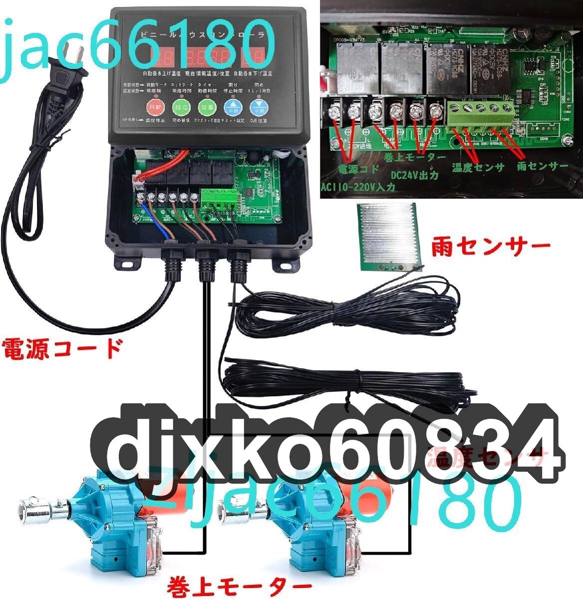 ビニールハウス用 自動巻き上げ機 電動フィルム巻上げ換気装置 100W 4.0rpm 100NM 農業温室用 保証1年間 (巻上モーター*2+制御器*1+リフタ