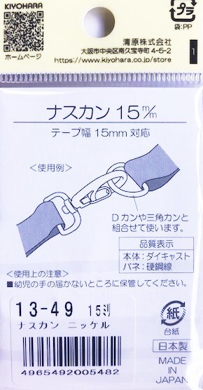 ◆カン/1個◆ダイキャスト製/日本製/新品◆メール便もご利用OK!(当店はゆうパケット採用)サイズ(約):テープ幅15mm対応