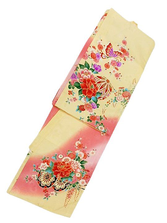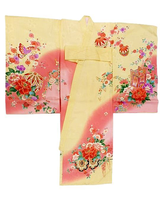 お宮参り 初着 女の子 産着 着物 一つ身 お祝い着 赤ちゃん 正絹 クリーム地 御所車 牡丹 柄No.2