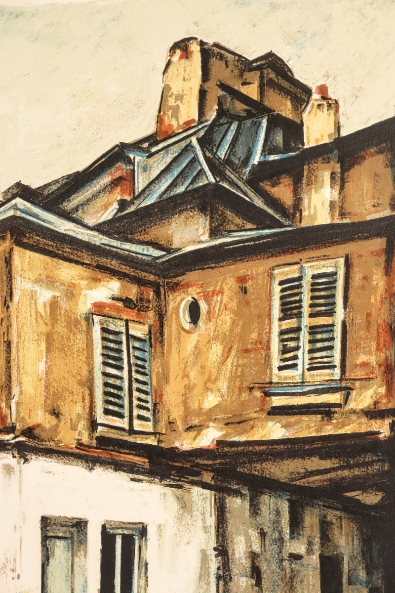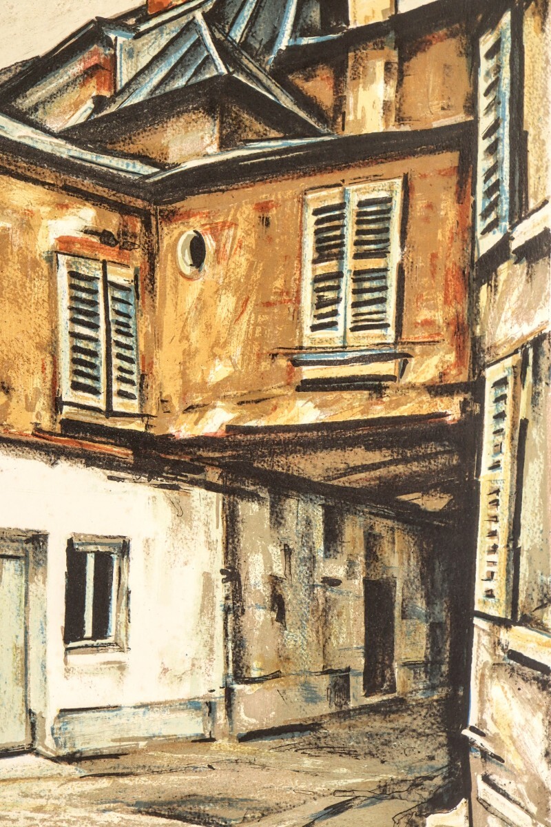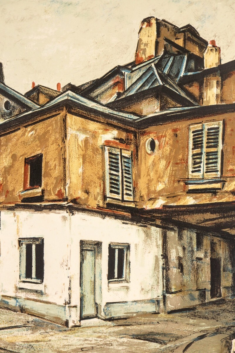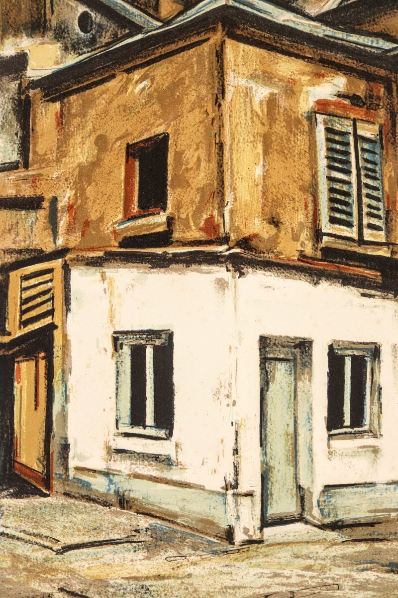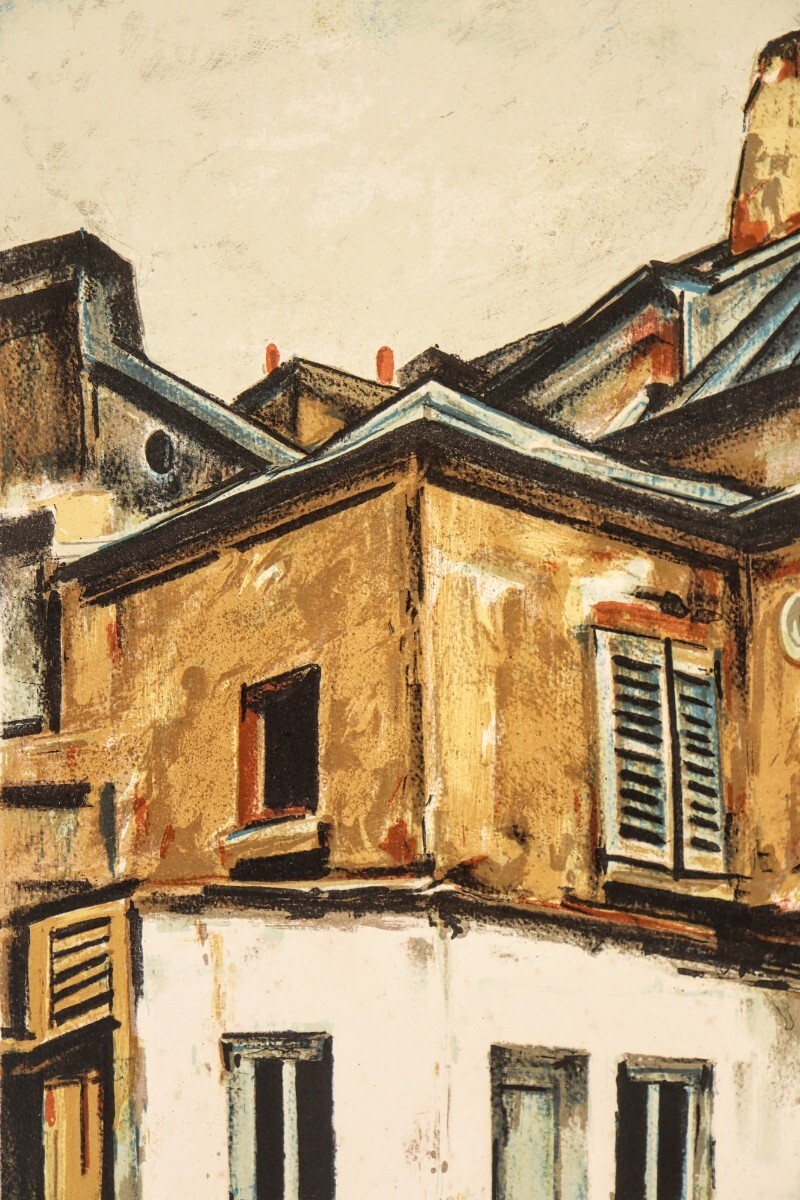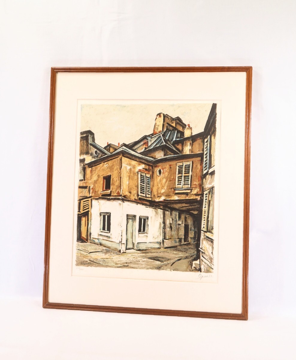 真作 荻須高徳 リトグラフ「シャロンヌ通り」画寸 47cm×55cm 愛知県出身 藤島武二に師事 深い色彩でパリの裏通りの何気無い風景 10881