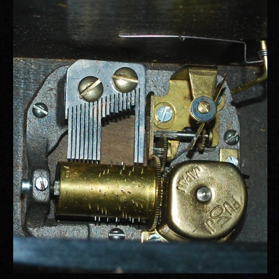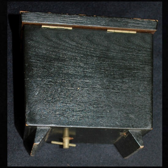 何だか切なくなるよな侘しい趣きが、 中のリード部分の半数が欠損、はしょったよなメロディーも哀しい・・・、捨てきれない! ◆ サイズ ◆ ( 最大部分) w : 11 × d : 7 × h : 10 . 7 cm 程 ◆ 状態 ◆ 表上部飾りに欠損部、前部上部に当り傷や、 中の機械部のリードが半分ぐらい欠損していますが、一応動いています。 |