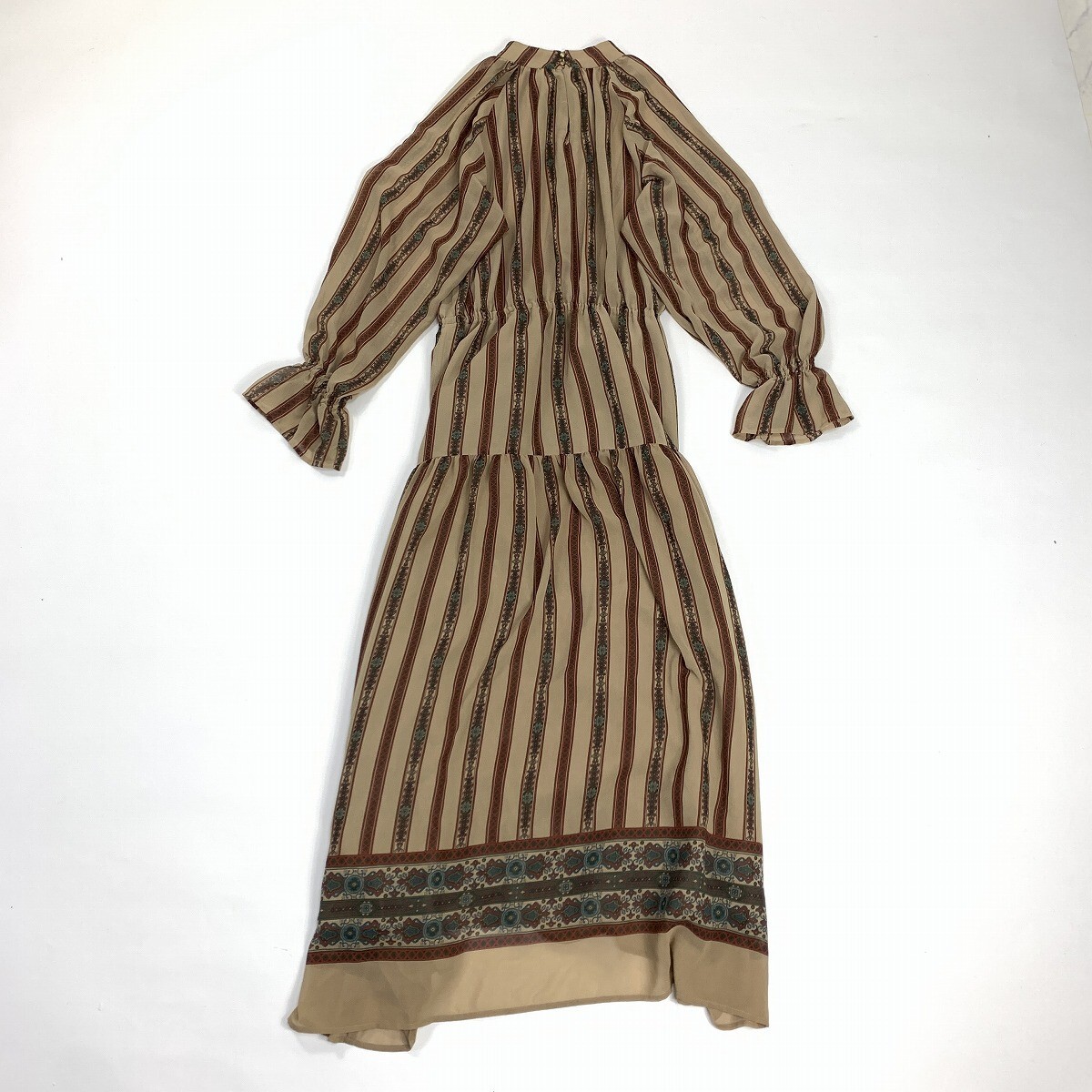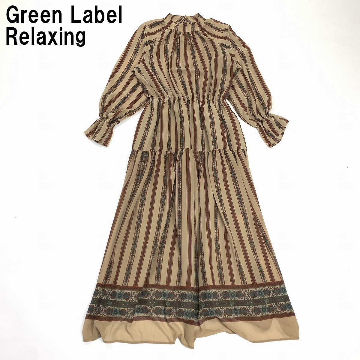 Green Label Relaxing グリーンレーベルリラクシング ロングワンピース 長袖 ストライプ 裏地あり ベージュ F YC243