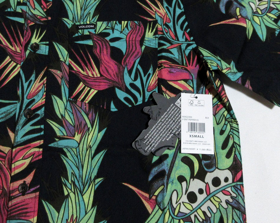 ボルコム Entertainment Pepper 半袖シャツ XSサイズ A0422300 Volcom ハワイ スカル 骸骨