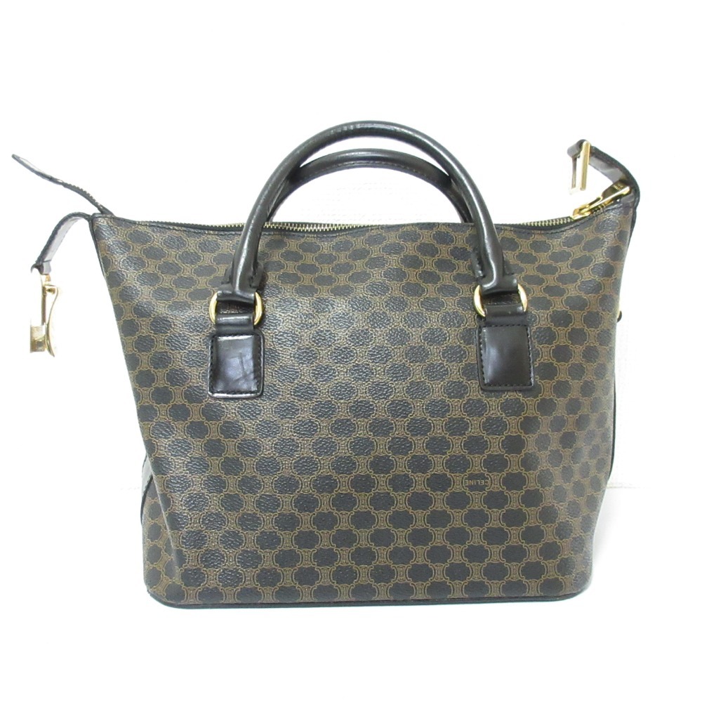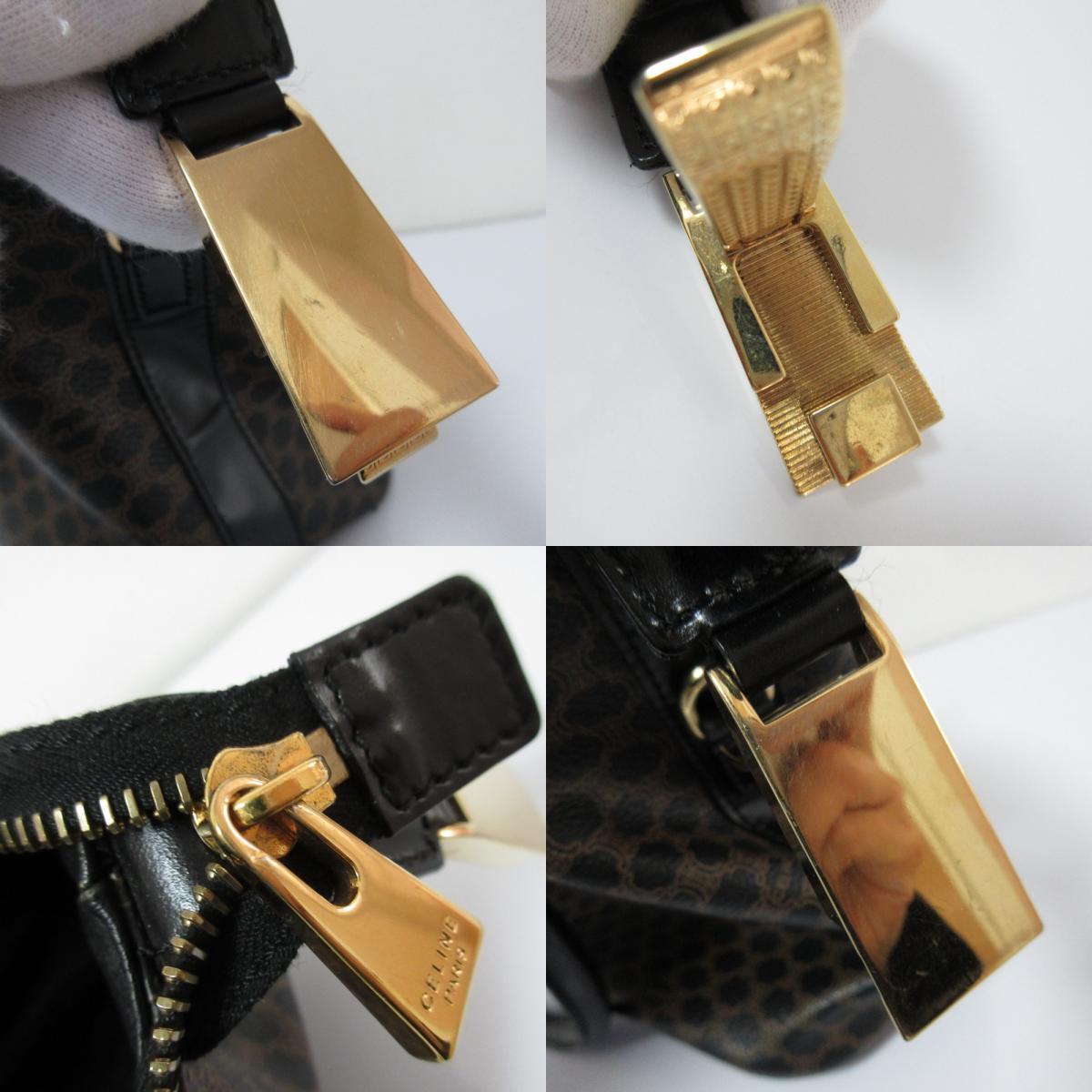 良品 CELINE セリーヌ ヴィンテージ マカダム柄 ハンドバッグ ブラック ブラウン