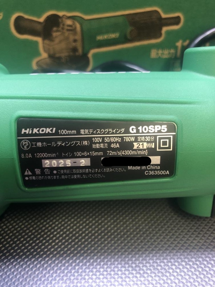 ハイコーキ HIKOKI ■商品名 100mm電気ディスクグラインダ ■型番 G10SP5 |