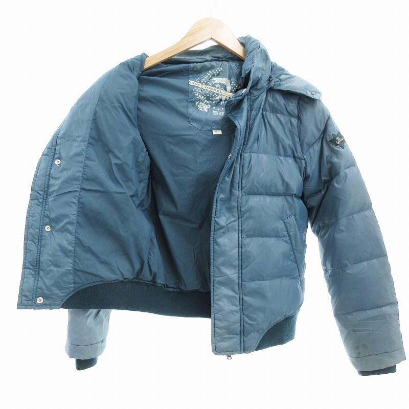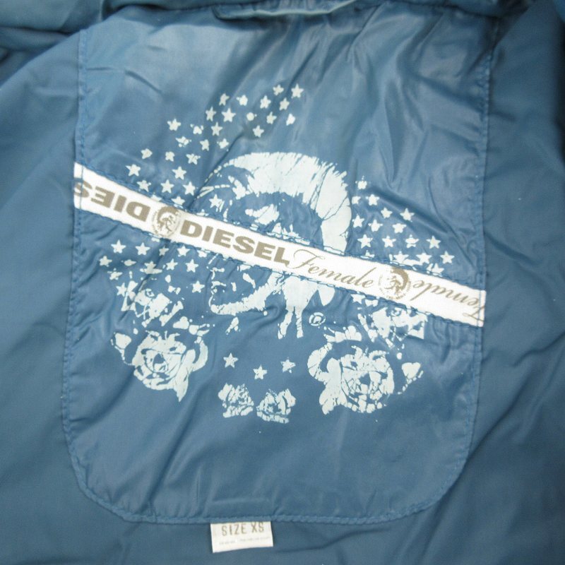 ディーゼル DIESEL ダウンジャケット コート 2WAY フェイクファー ショート丈 XS 青 ブルー /AE レディース