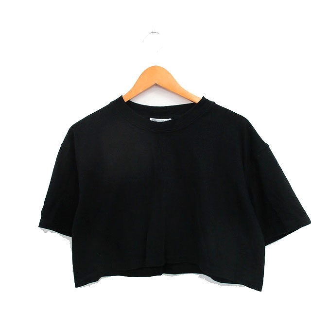 ザラ ZARA Tシャツ カットソー 半袖 ショート丈 へそ出し シンプル M ブラック 黒 /KT7 レディース