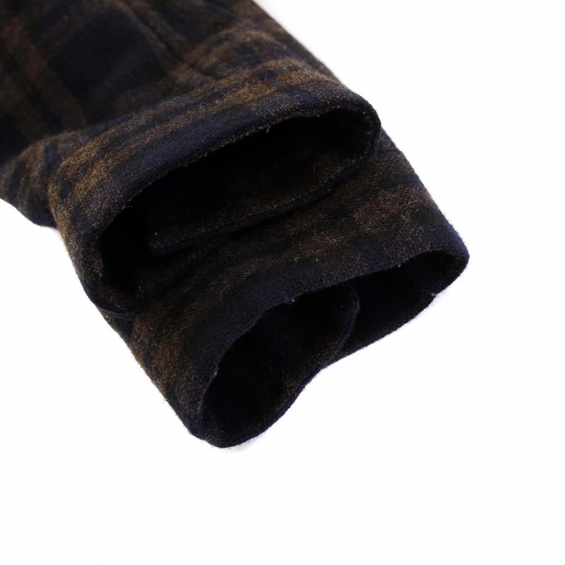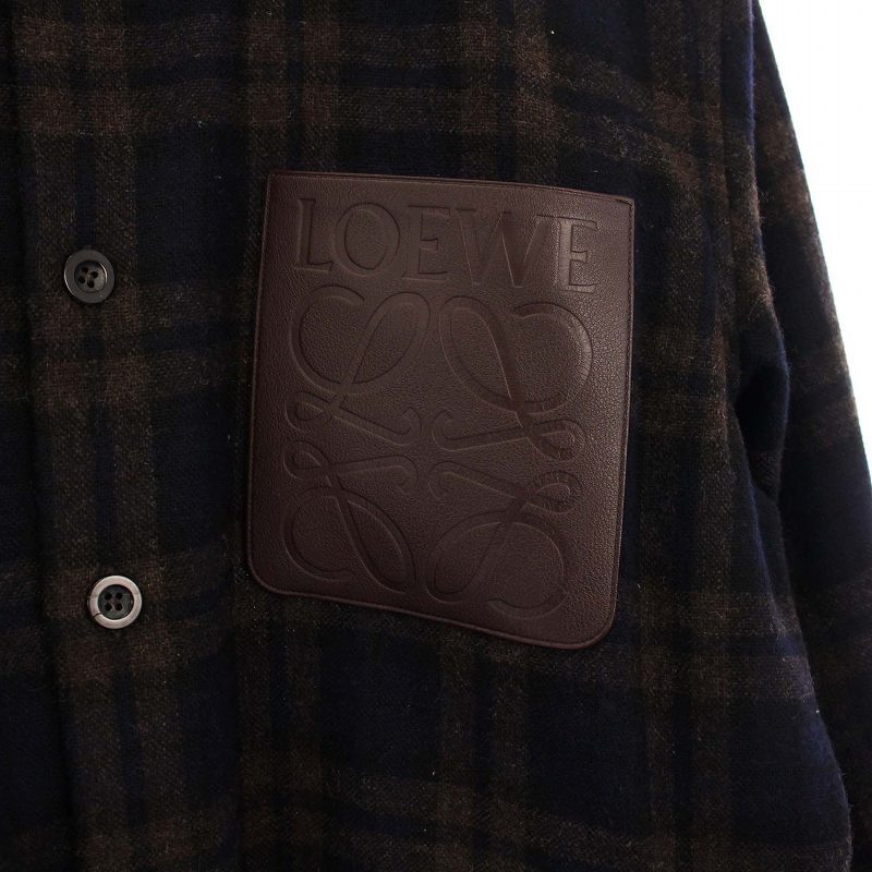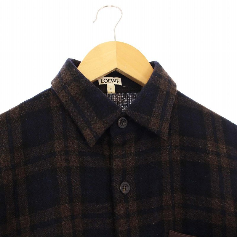 ロエベ LOEWE チェックシャツ 長袖 アナグラム ウール S ネイビー ブラウン H2289140CG /KH メンズ