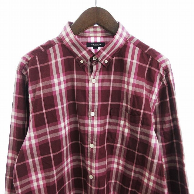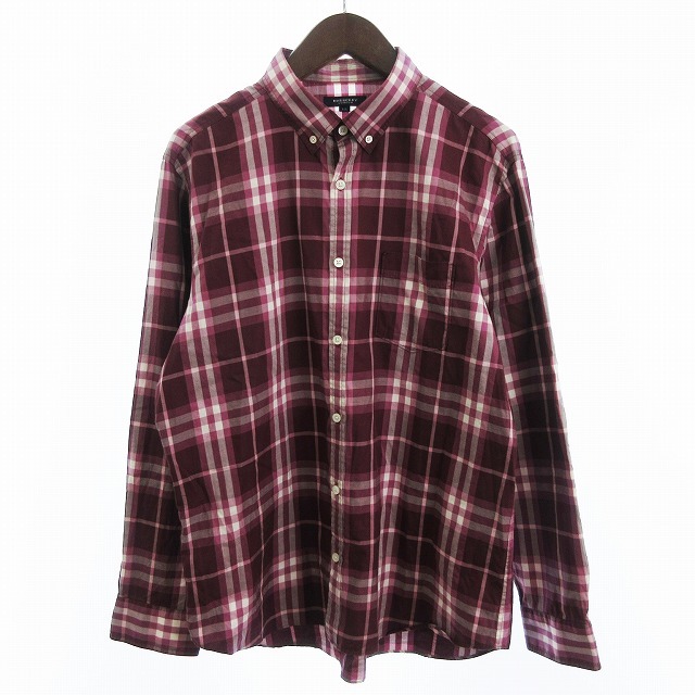 バーバリー ロンドン BURBERRY LONDON シャツ 長袖 ボタンダウン コットン ノバチェック 紫系 パープル系 LL ■GY14 メンズ