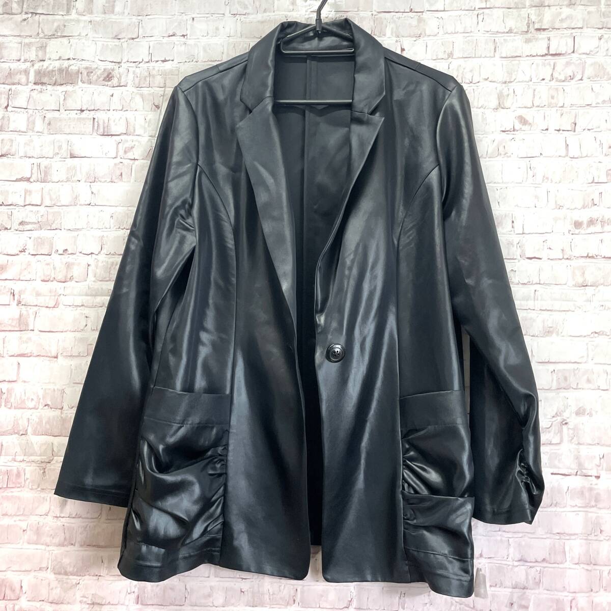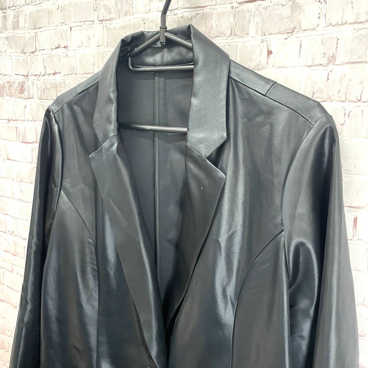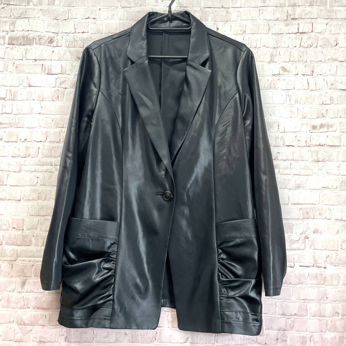 長袖 テーラード ジャケット 光沢  ダークグリーン系 ポケット&袖部分ギャザー 個性的 レディース 日本製