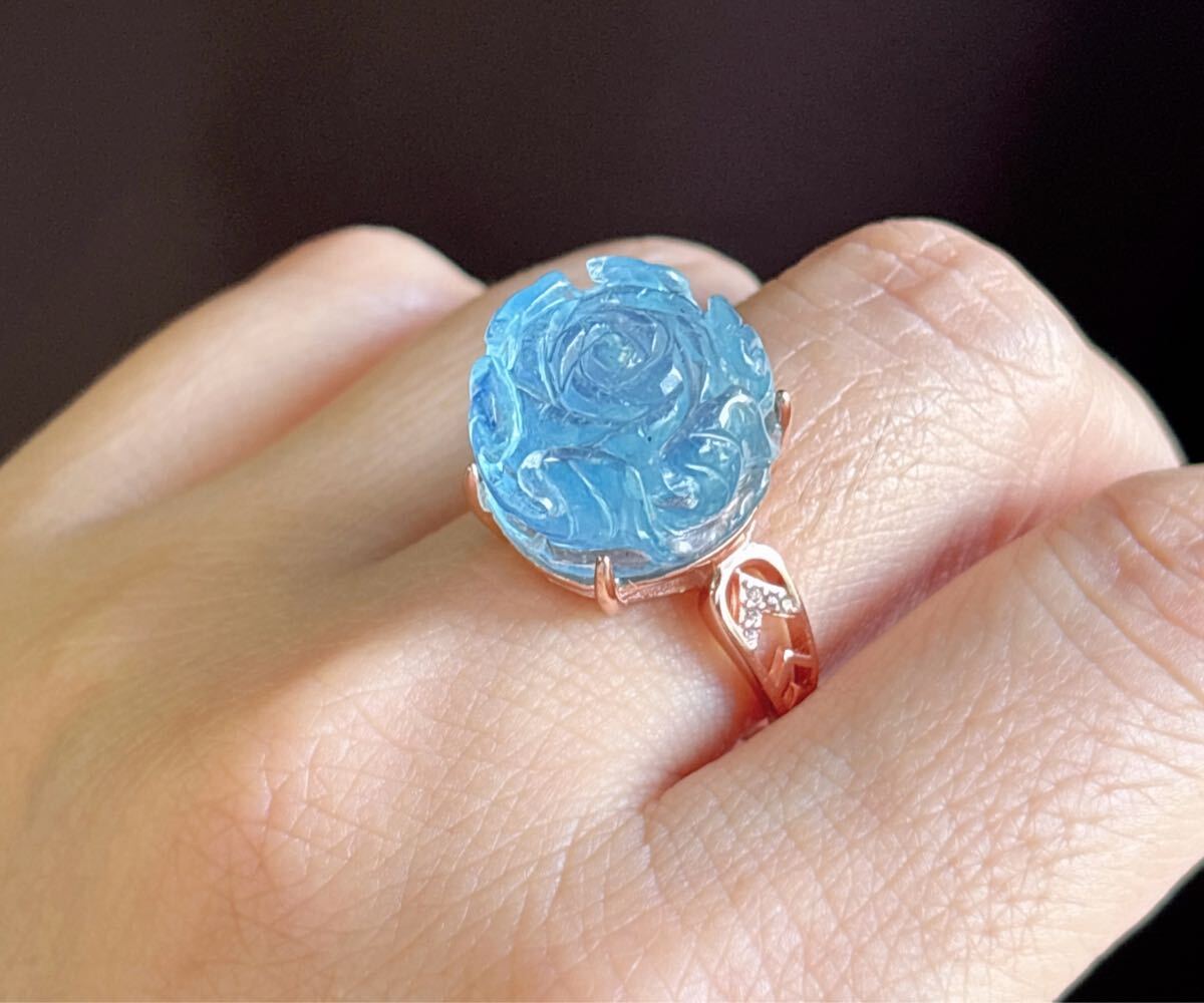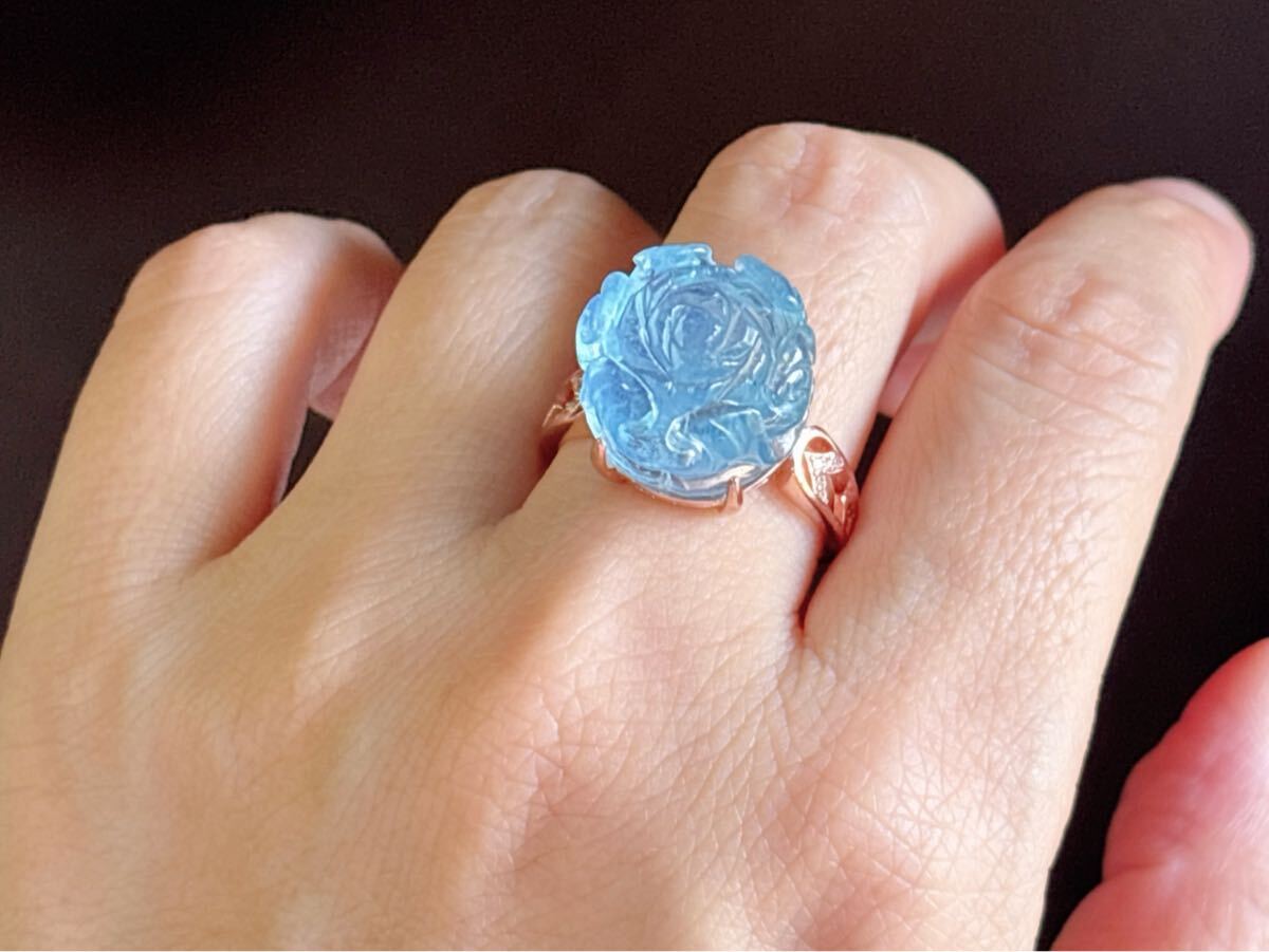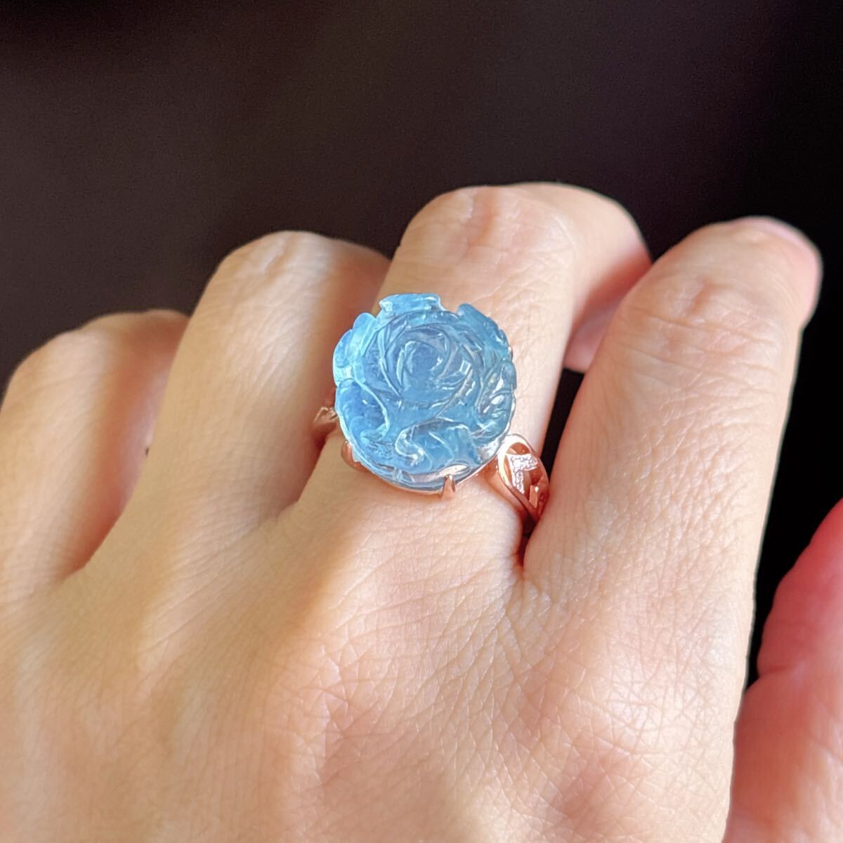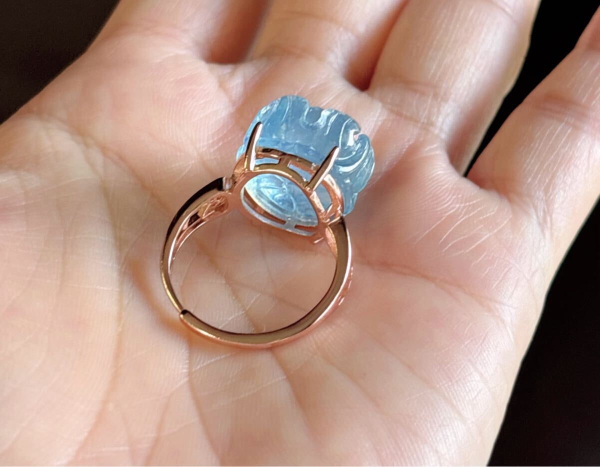 【天然石】モスアクアマリンのリングサイズ:14.5mm*15mm*厚さ11mm(大号);