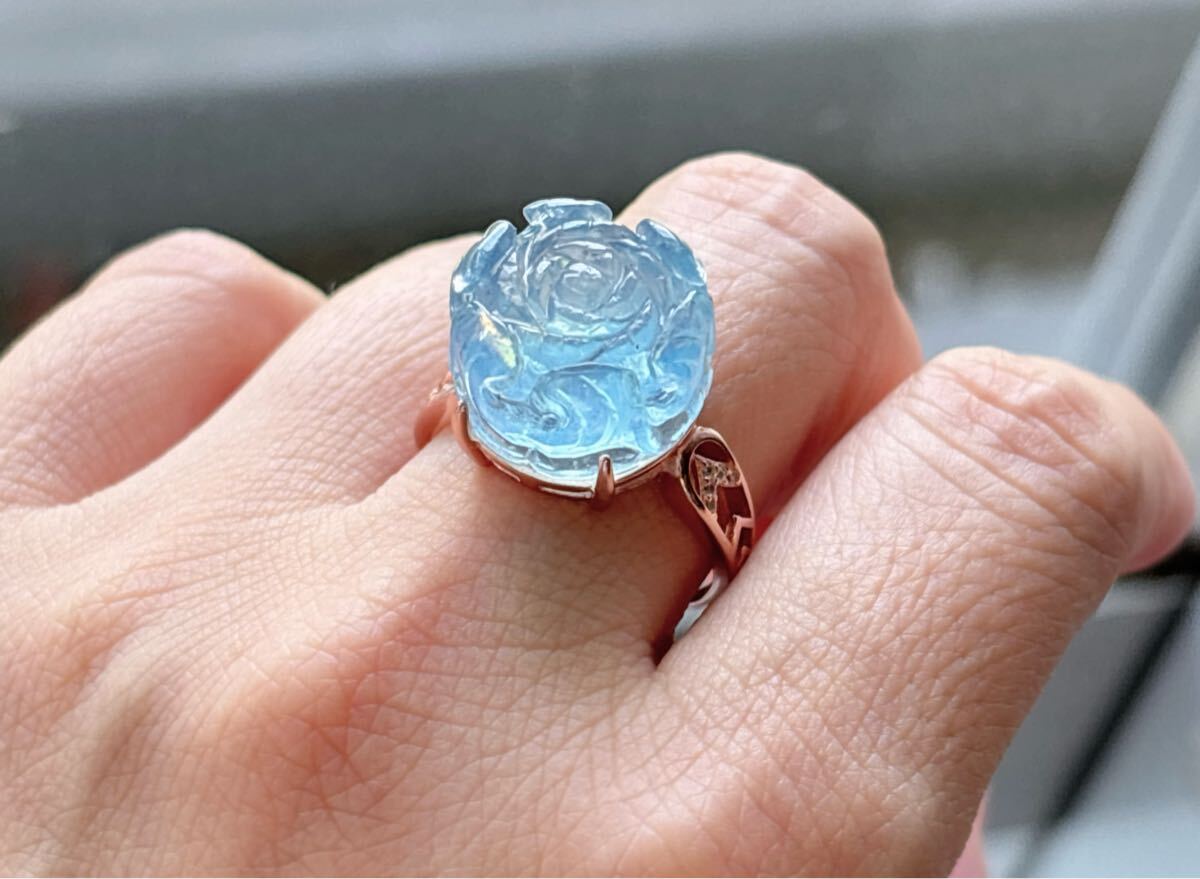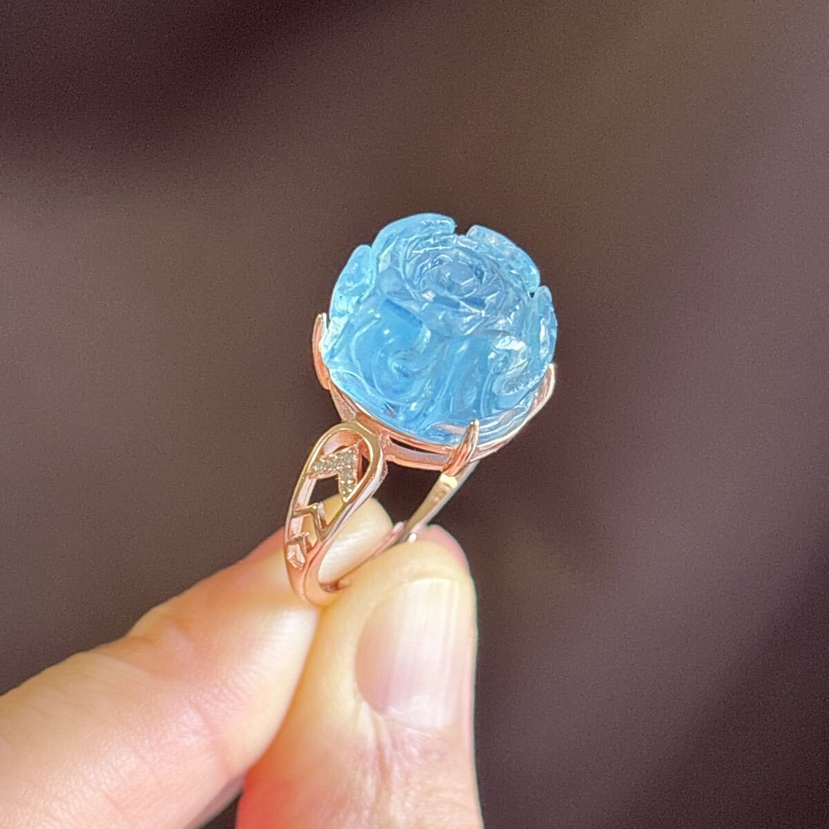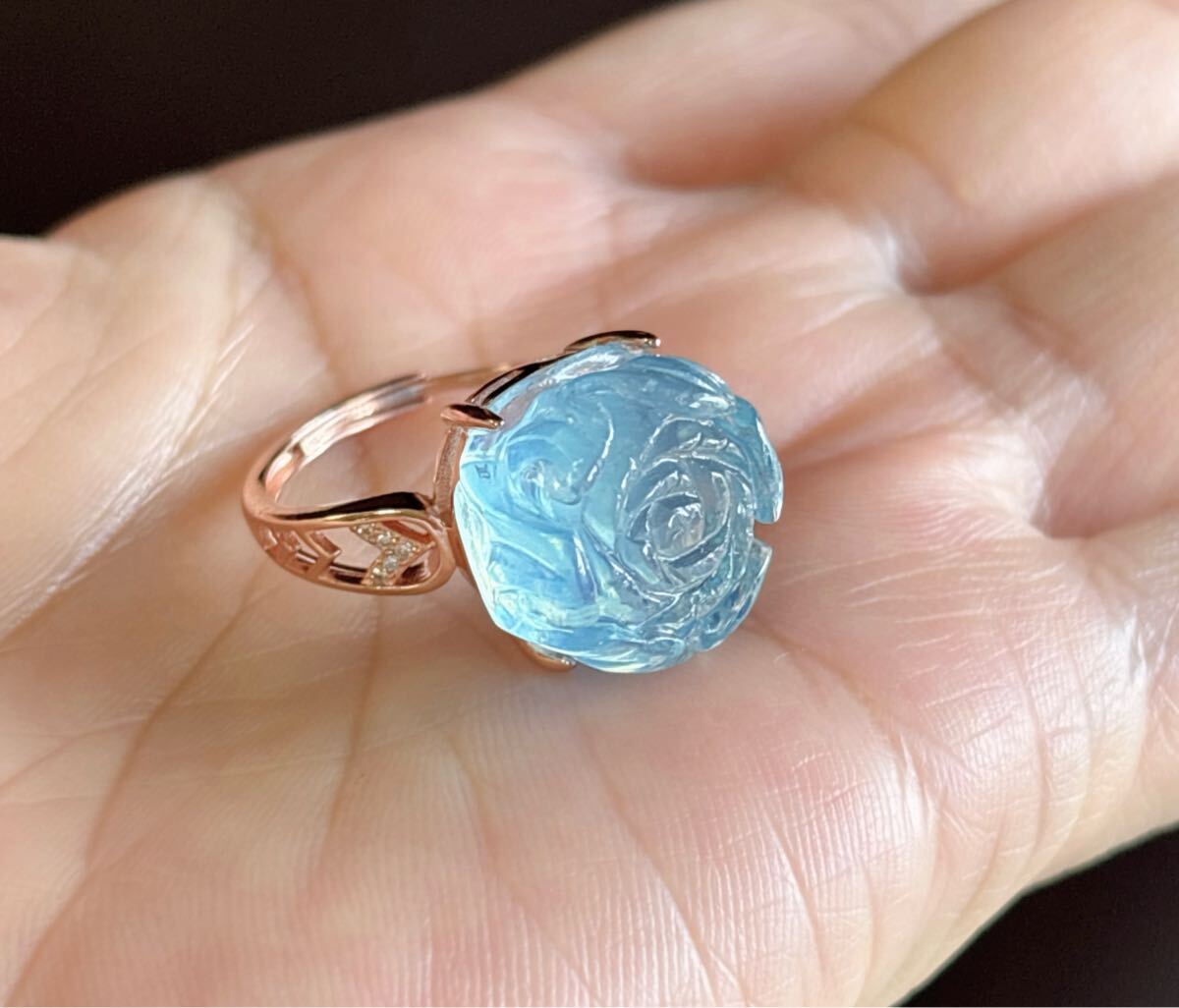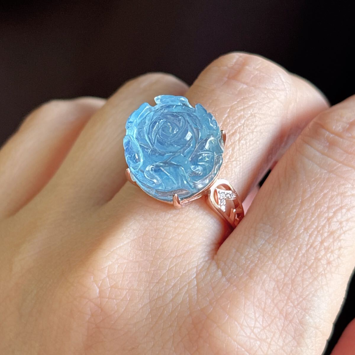 【天然石】モスアクアマリンのリングサイズ:14.5mm*15mm*厚さ11mm(大号);