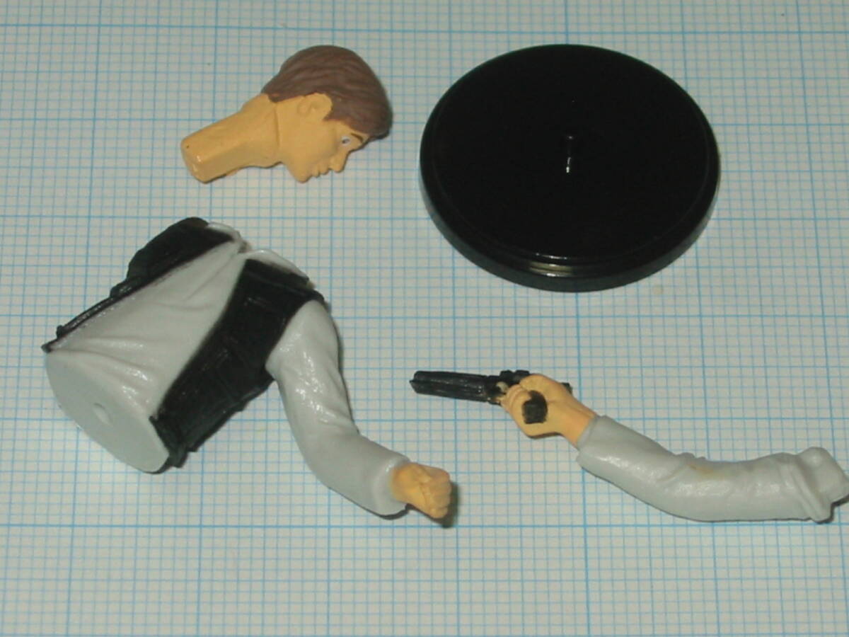 フルタ★チョコエッグ スターウォーズ 02 「ハン・ソロ」STAR WARS スター・ウォーズ Lucasfilm です!!送るのは、飾っていた本体のみの組み立て済みの写真のものです。説明書はありません。プチプチ包装もします。。本体の色あせ、色むら、小キズ、台座の刻印違い等、ノークレームでお願いいたします!!裏側の台座の刻印 (C) & TM Lucasfilm Ltd. F.R.T 02