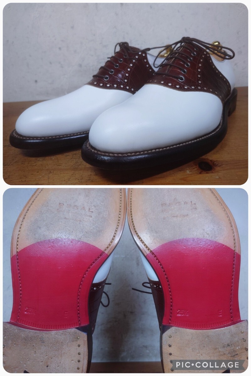【1度使用程度/極美品】日本製 REGAL/リーガル Built to order クロコ型押 サドルシューズ SIZE:251/2E です。