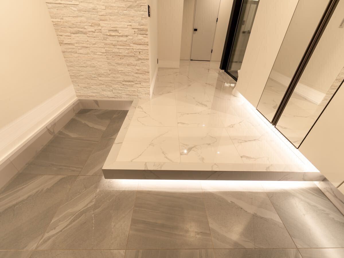 例えば、600角の床タイルであれば、鏡面の大理石調タイルでも、マットのコンクリート調のタイルでも同金額でご提供しております。